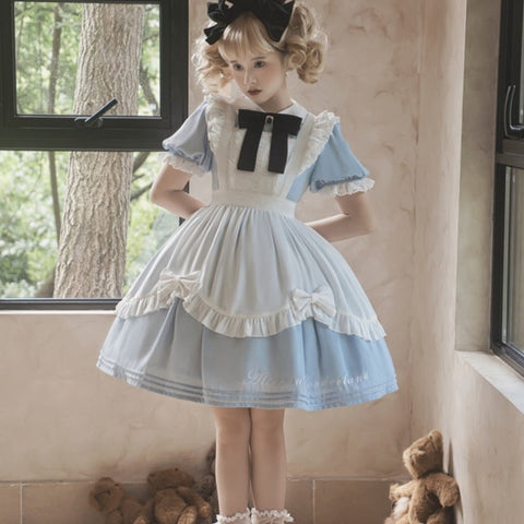 ジャバウォッキーと戦うアリスのブラックリボンモノトーンワンピース ゴスロリ
