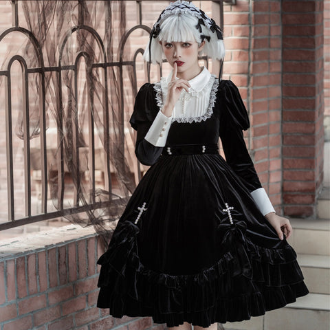 RPGやファンタジーな物語に登場するような聖女や修道女のようなクラシカルなワンピースは、ハロウィンの時期が終わったらつけ襟を外せば、クラロリワンピースになる2WAYなので、クリスマス時期に着るのにもぴったりです。