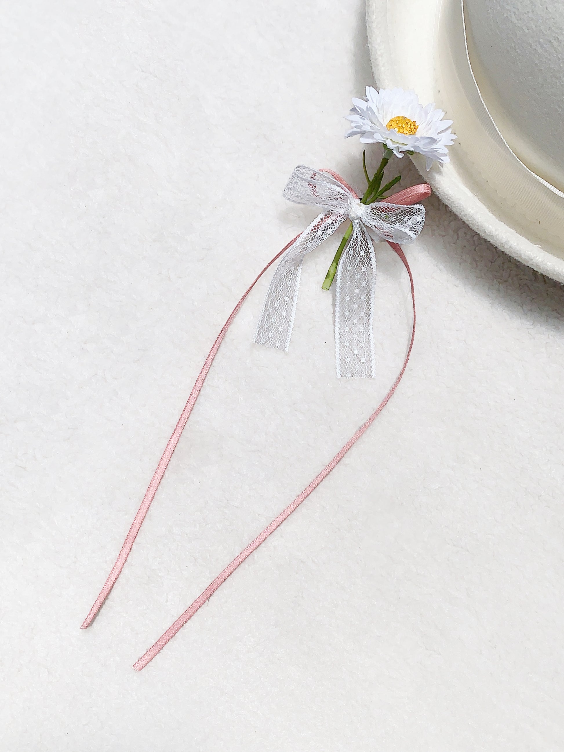 お好みの形に結べるリボンタイとお花のブローチ付き。
