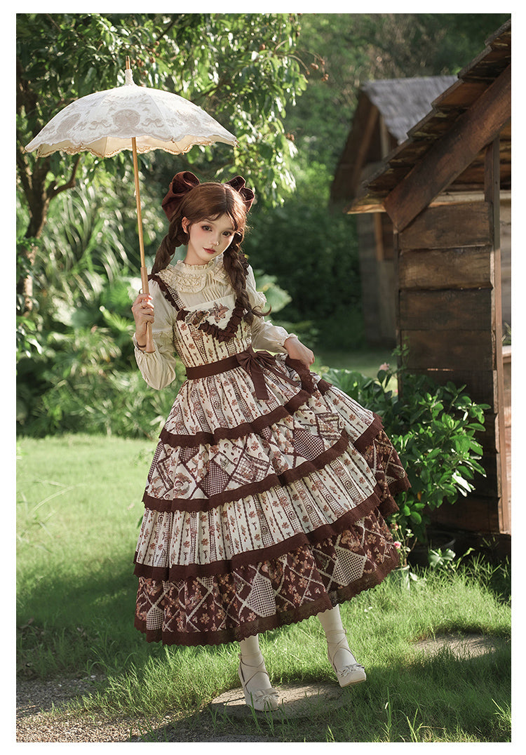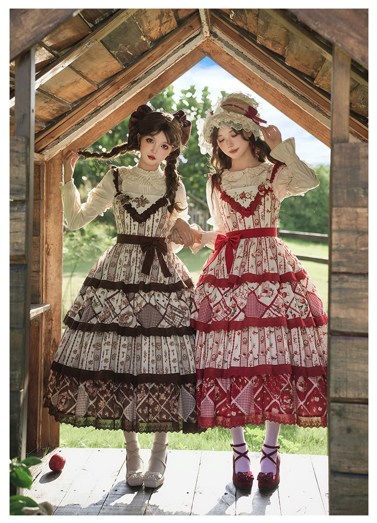from 200 reviewsJSKというよりはハイウエストのサス付きスカートという感じ。シンプルなデザインだけど、ロリィタの求める要素が詰まっていてこだわりを感じました!サスペンダーのボタンホールは複数ついていて長さを調節できるし、取り外せる共布リボンとリボンブローチはその日によって印象を変えられます。後ろリボンは前でも結べるので、少し工夫すれば何通りにでも着方を楽しめるところが、まさにロリィタの求めるお洋服です。思わず「わかってるー!」ってなりました。ポケット付きなのもありがたい!ちゃんとパニエに負けないくらいの蹴回しあります。