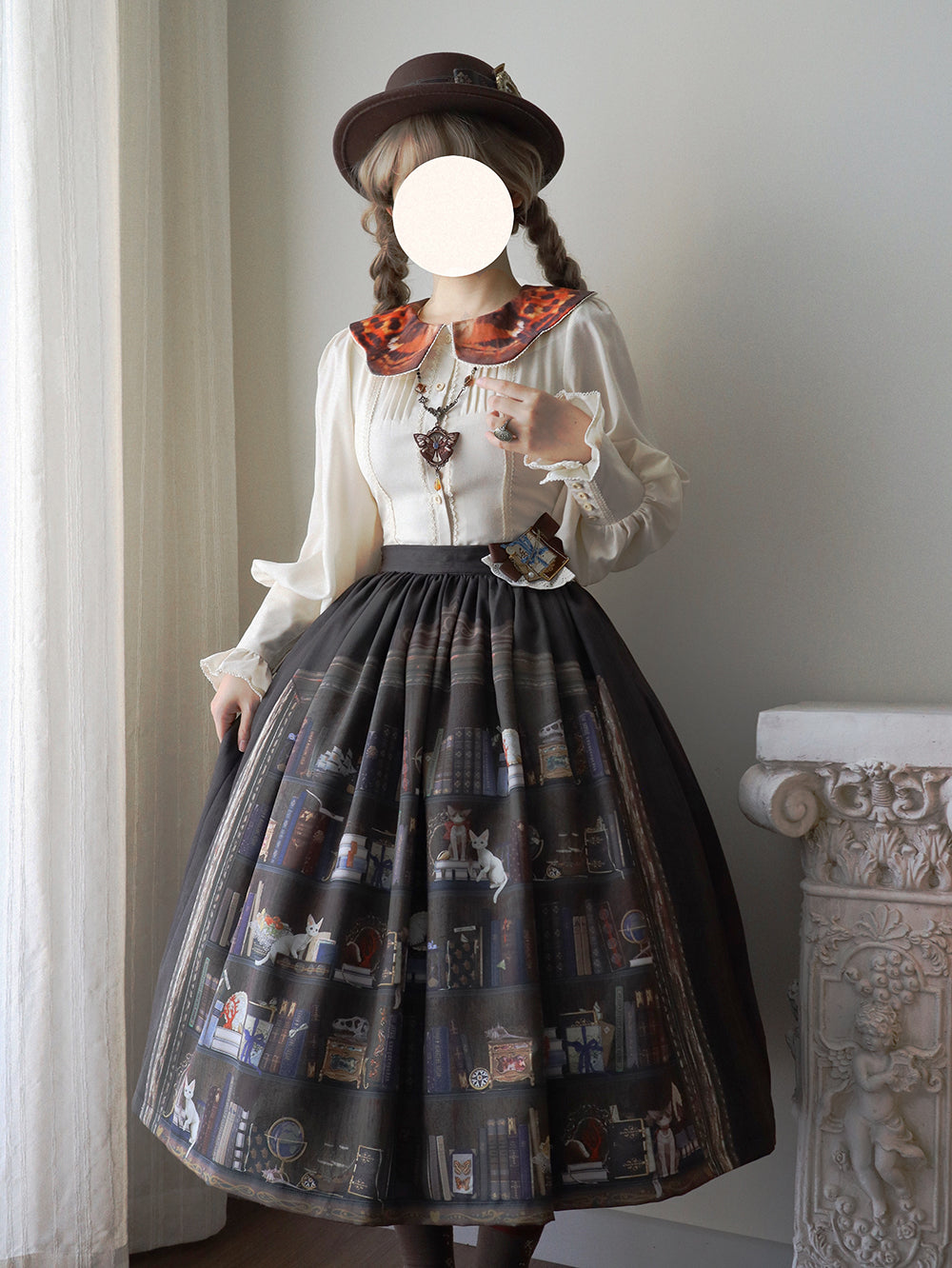 【受注予約11/6まで】German Bookcase プリント襟ブラウス