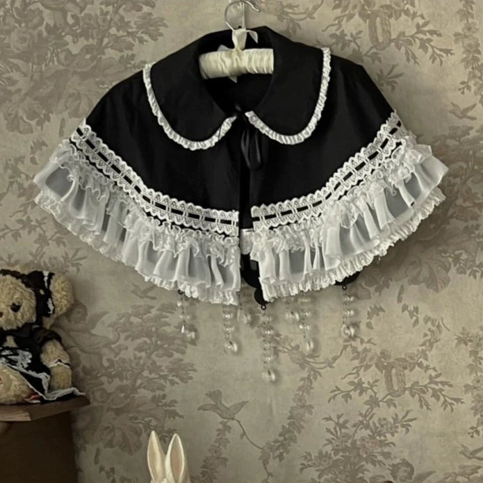 レースがたっぷりあしらわれたケープ。同シリーズのジャンパースカートとのコーデがおすすめです。