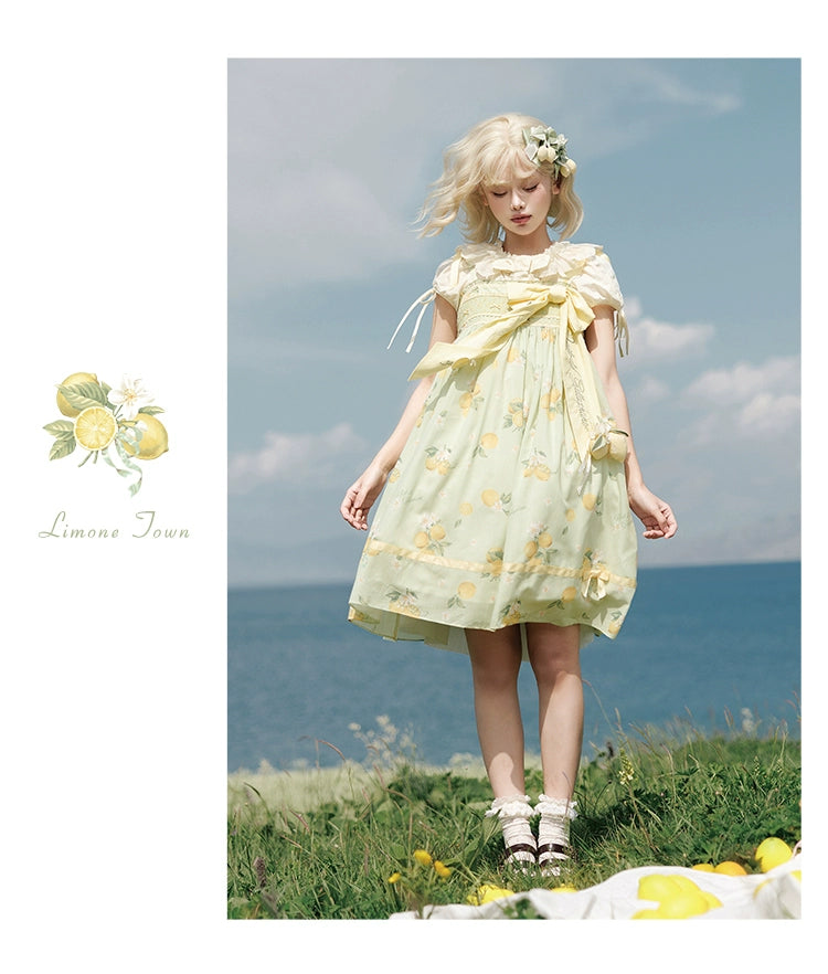 【受注予約7/16まで】Limone Town カントリー風ハイウエストジャンパースカート