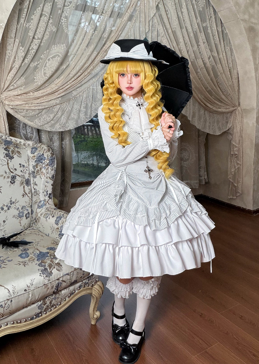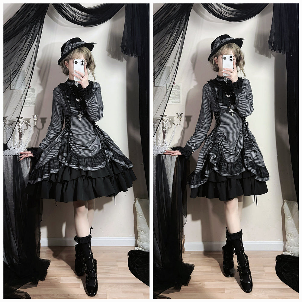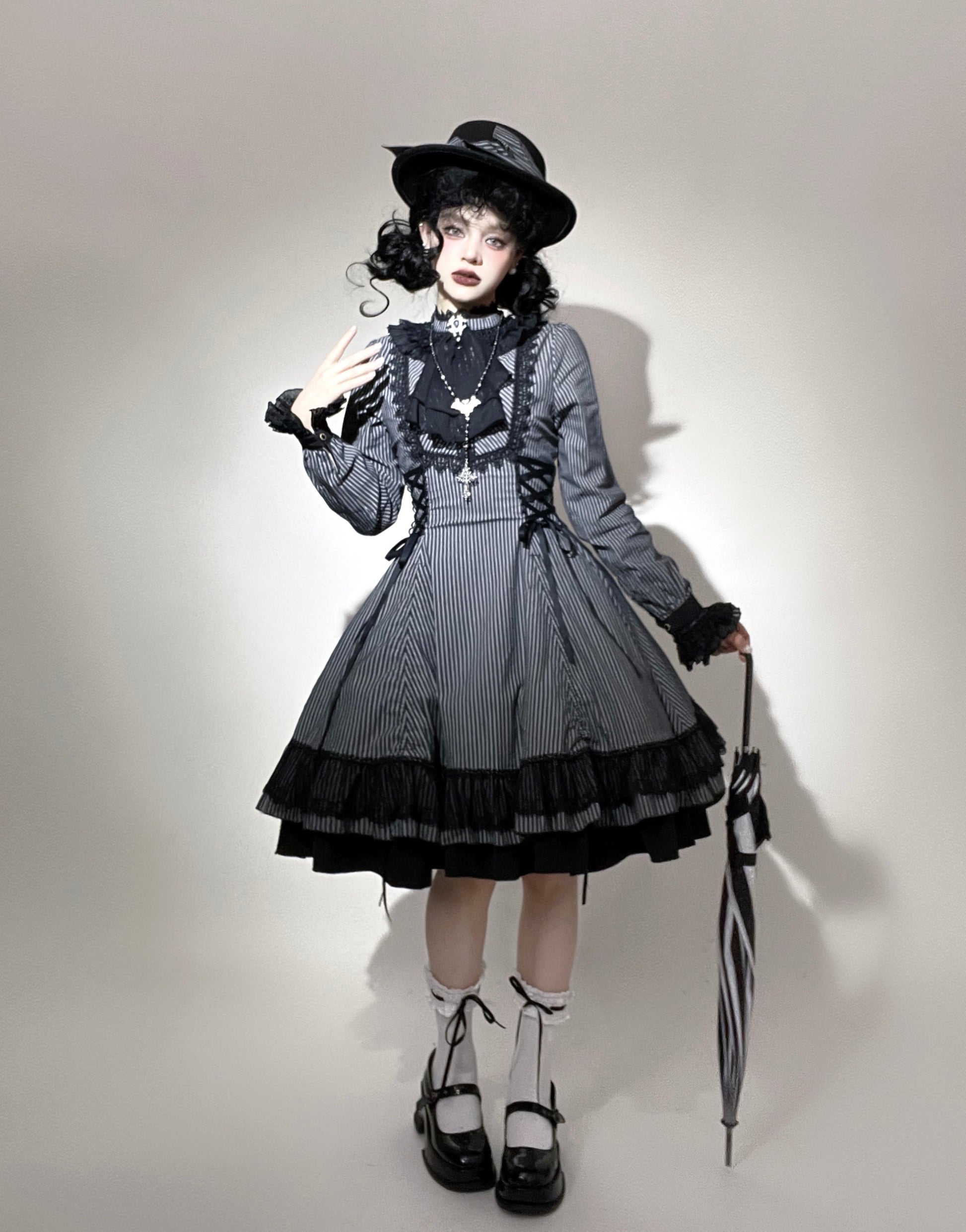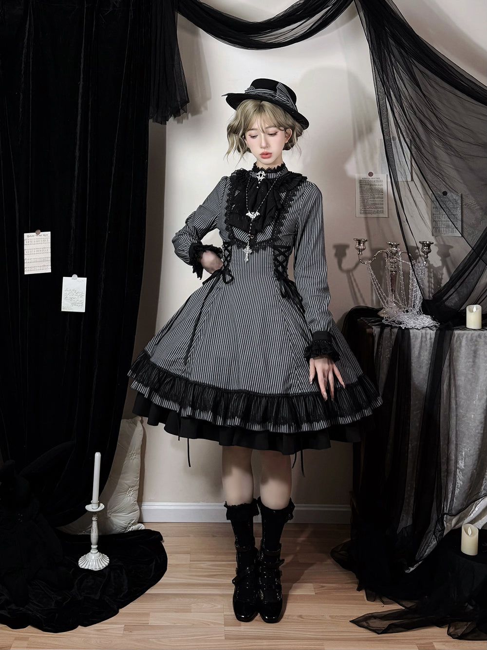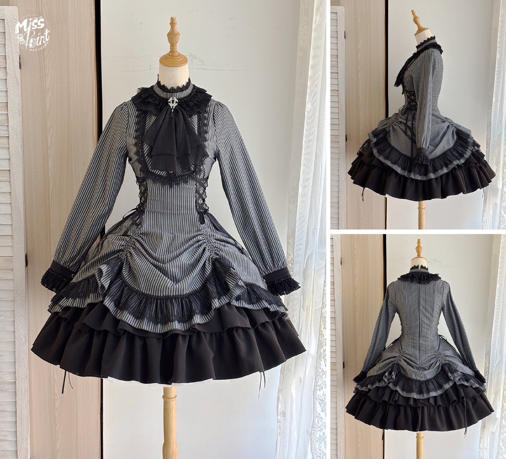 【受注予約1/7まで】領主貴族のゴスロリ スタンドカラーワンピース 縦縞タイプ・新色