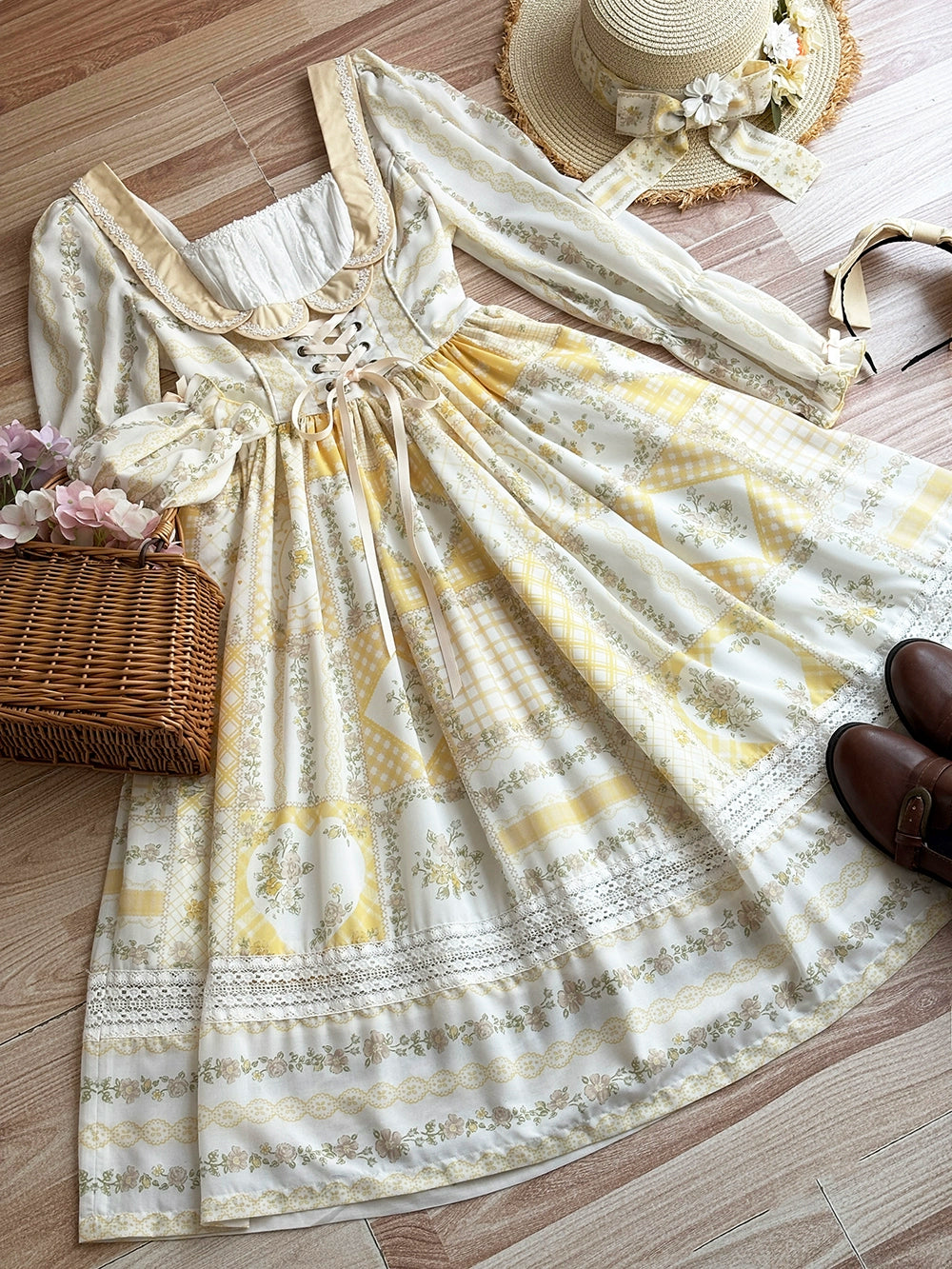 こちらのページはワンピースの販売となります。ブローチ、エプロン、ヘアアクセサリー等は付属しません。