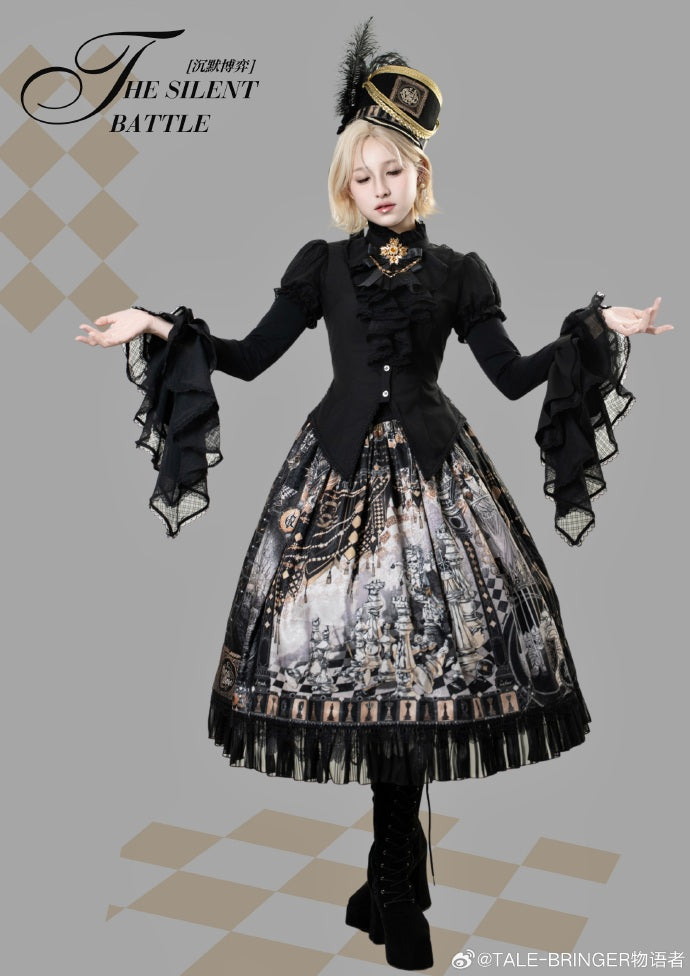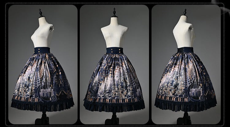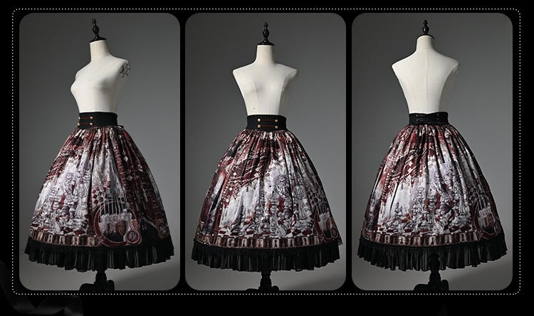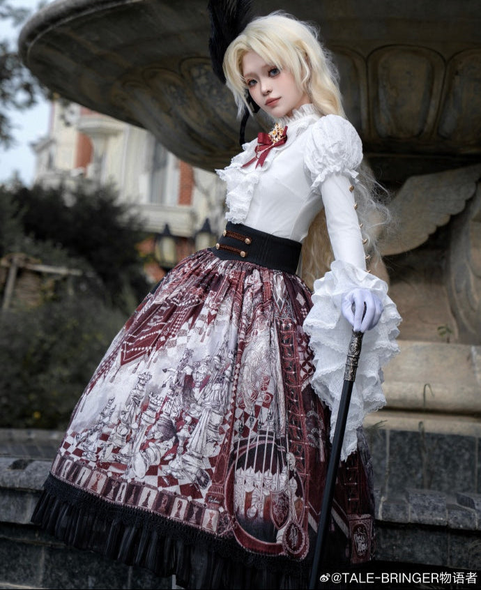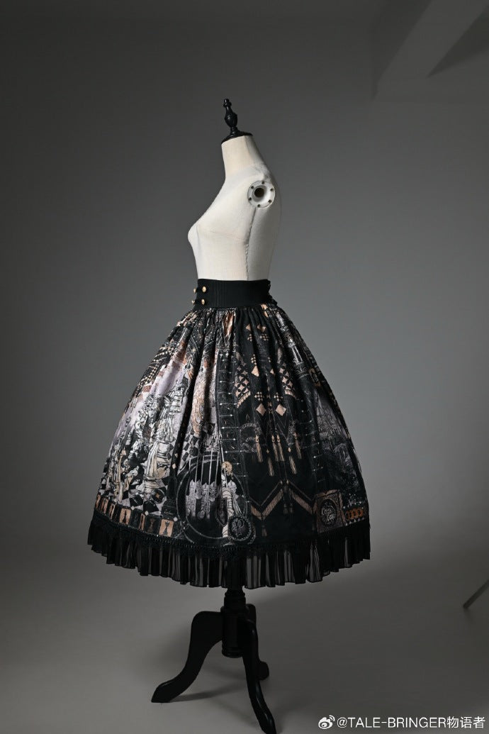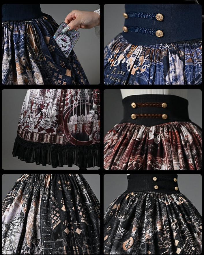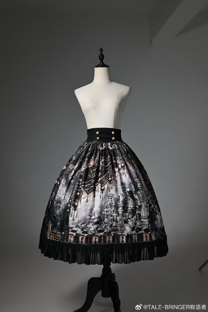 チェスモチーフのプリントが幻想的な雰囲気のスカート。同シリーズのブラウスや半袖ジャケットとのコーデがおすすめです。