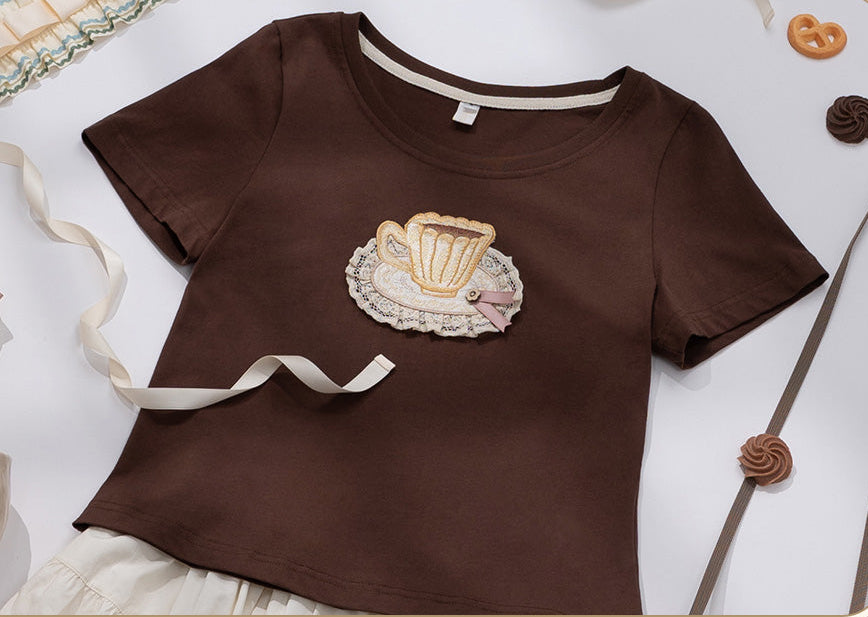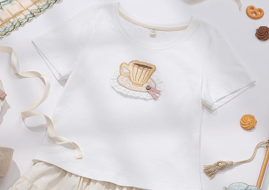 刺繍が可愛い半袖Tシャツ。