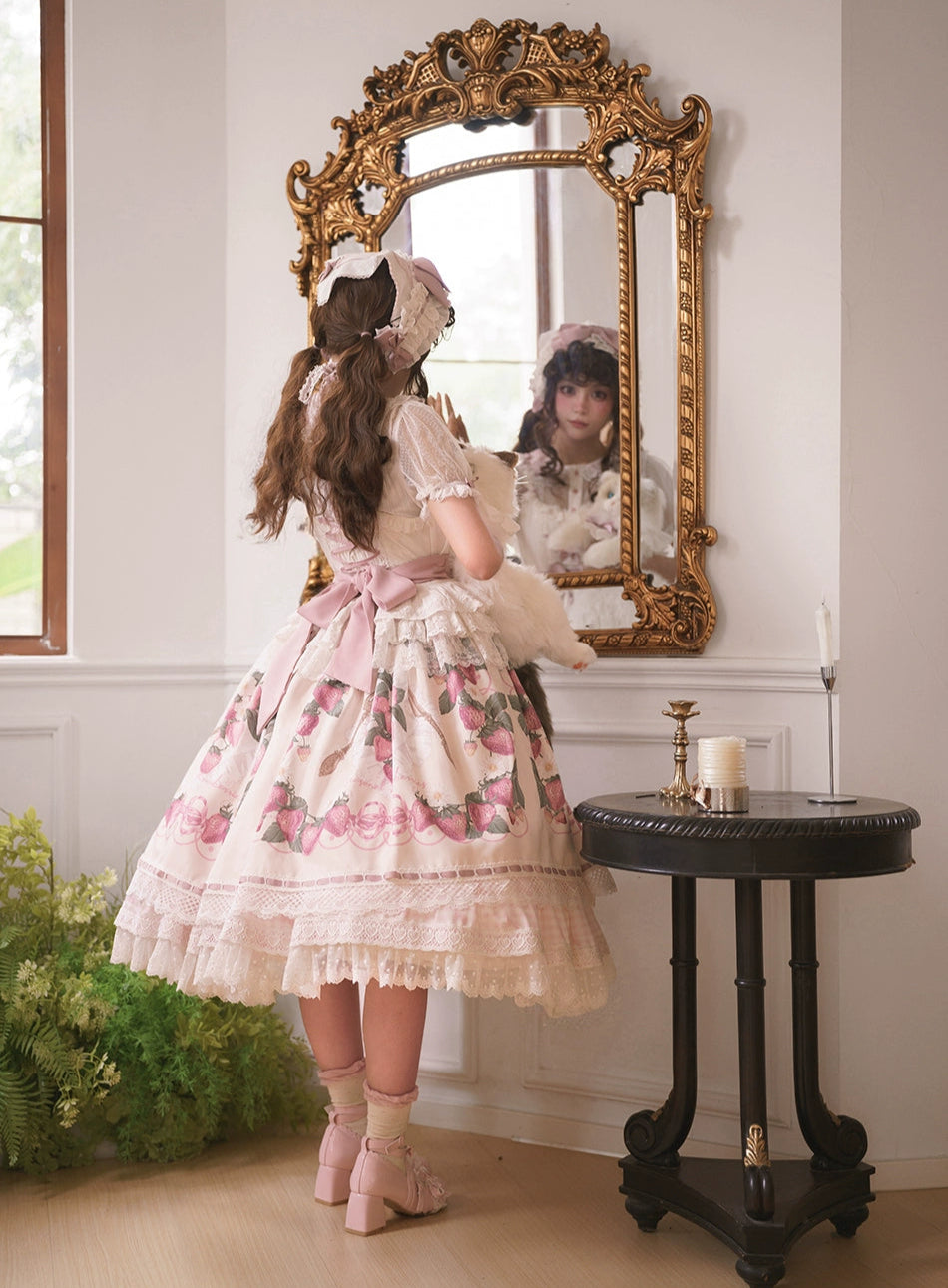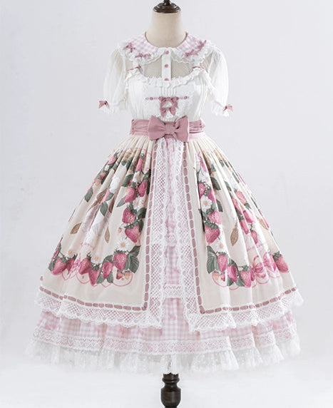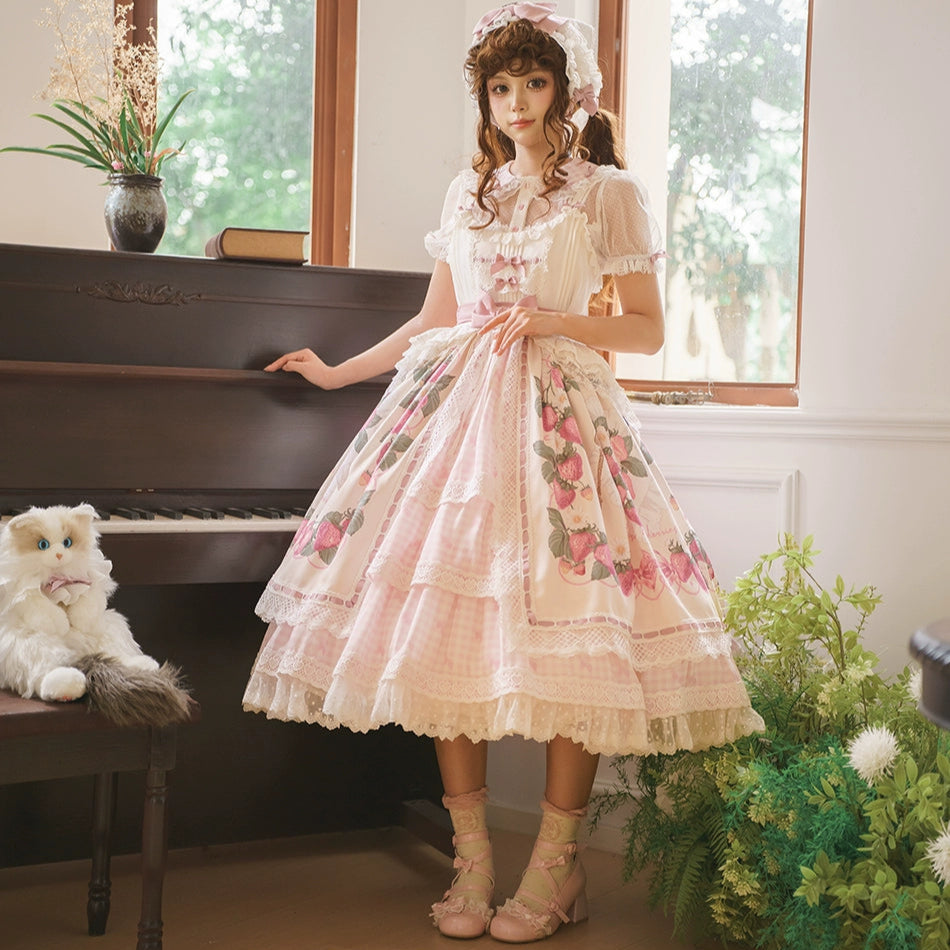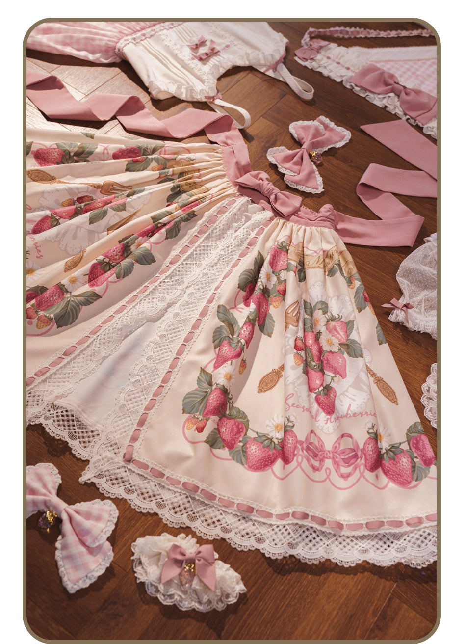 こちらのページはジャンパースカートと苺プリントのエプロンの販売となります。レースのエプロン、ブラウス、ヘアアクセサリー等は付属しません。