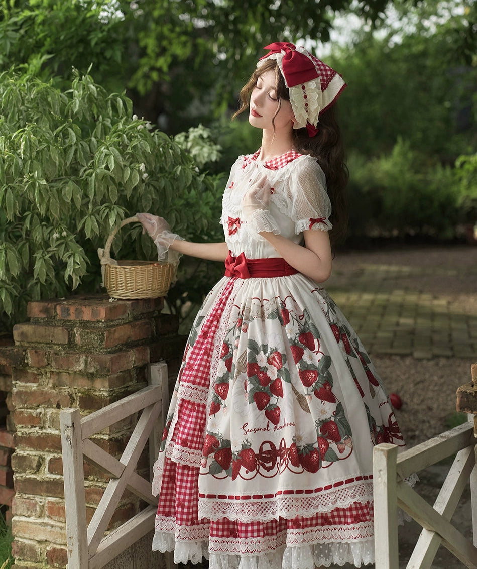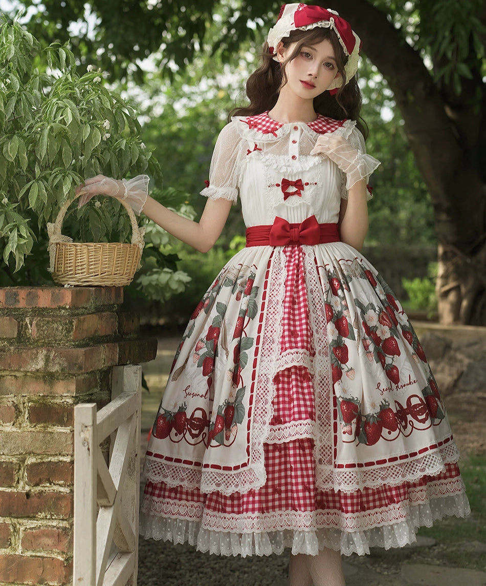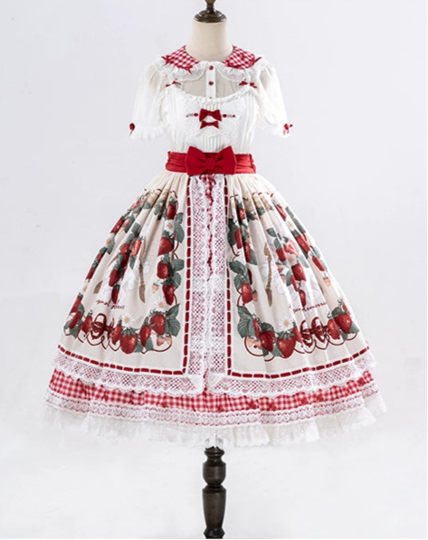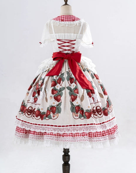 【受注予約8/18まで】Strawberry Sunshine Picnic カントリー風ジャンパースカートとエプロン