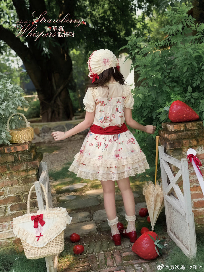 【受注予約8/14まで】 Strawberry Whisper スクエアネック半袖ブラウス