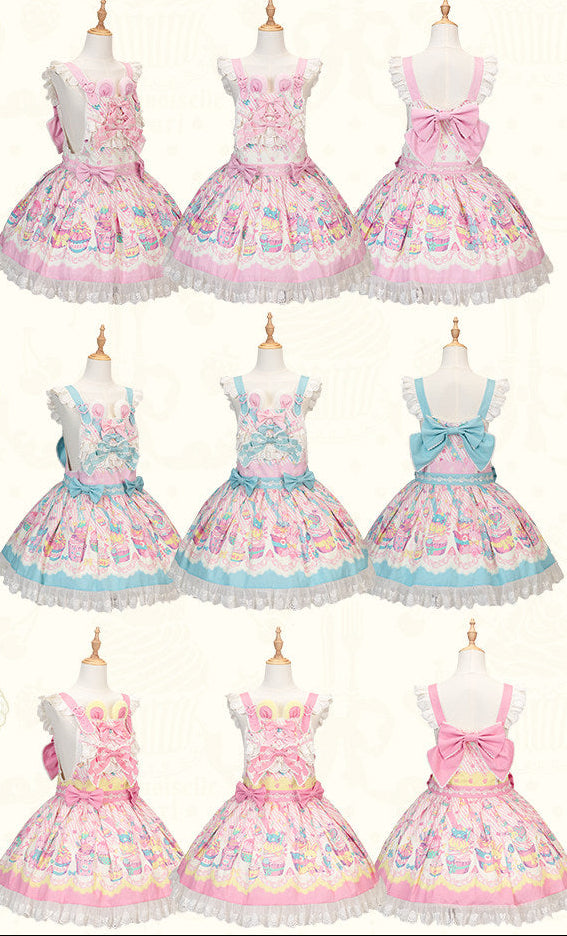 【受注予約1/26まで】Sweet Cup Cake プリントサスペンダースカート
