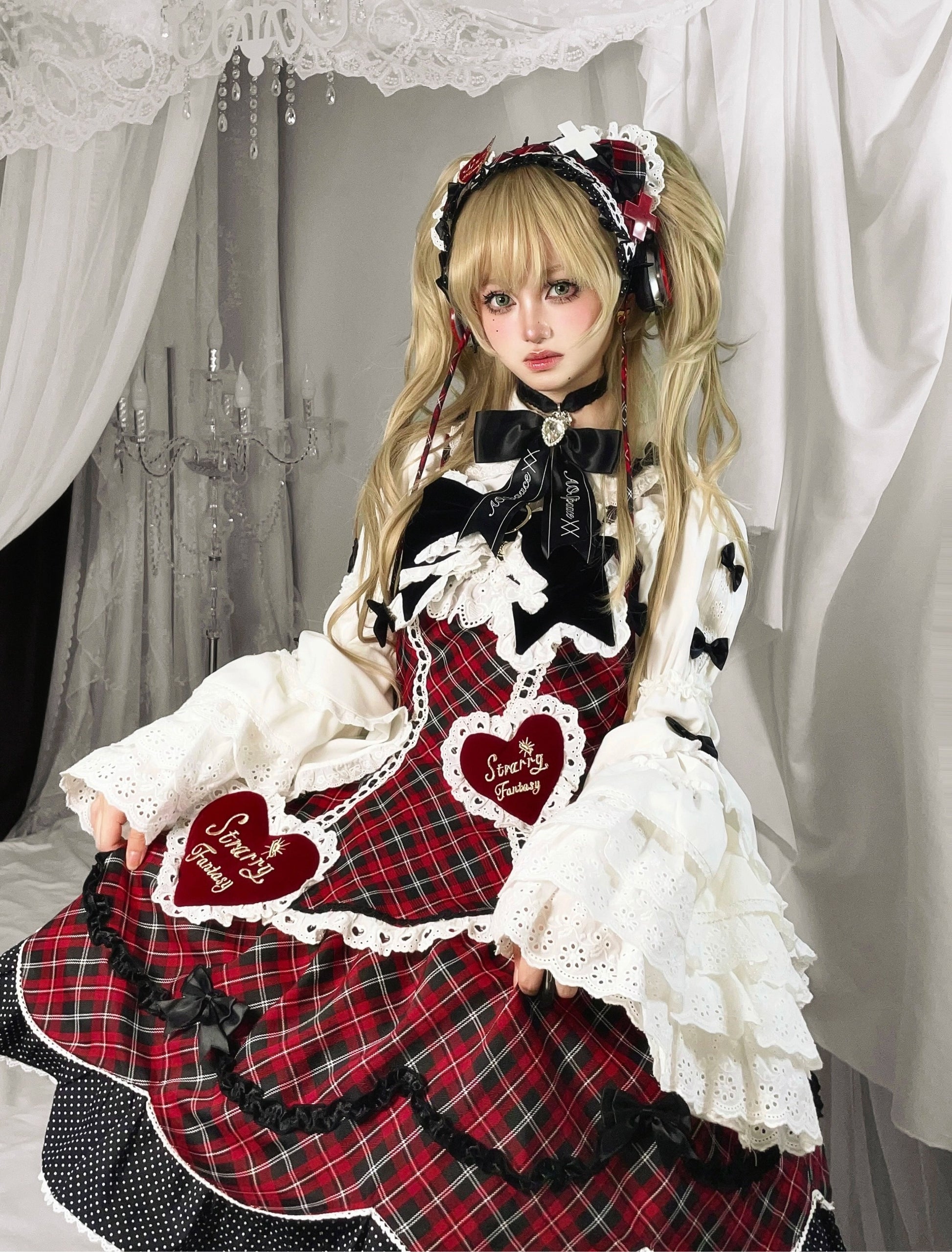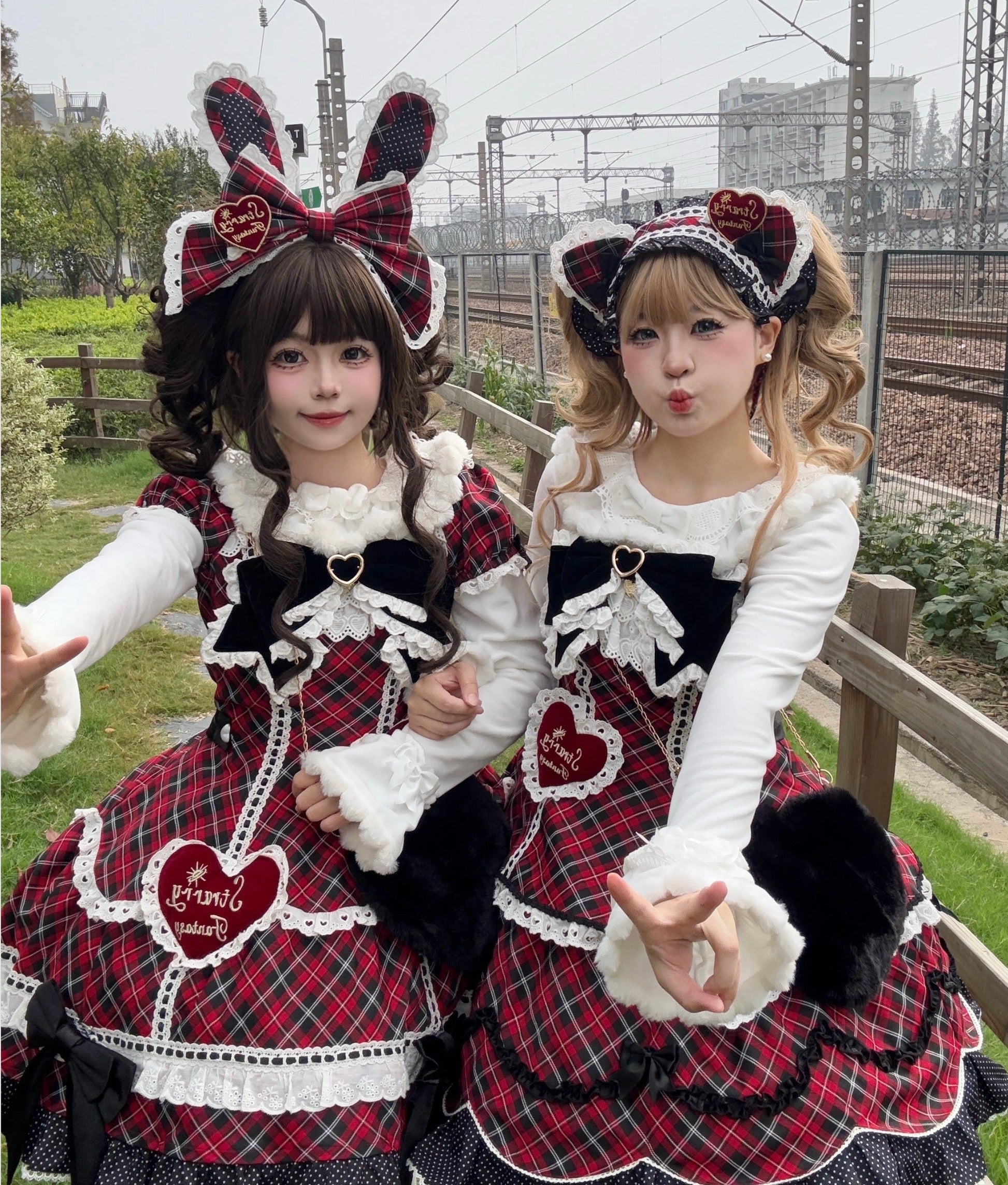 【受注予約11/13まで】Velvet Sweetie Heart チェックのジャンパースカート・レッド