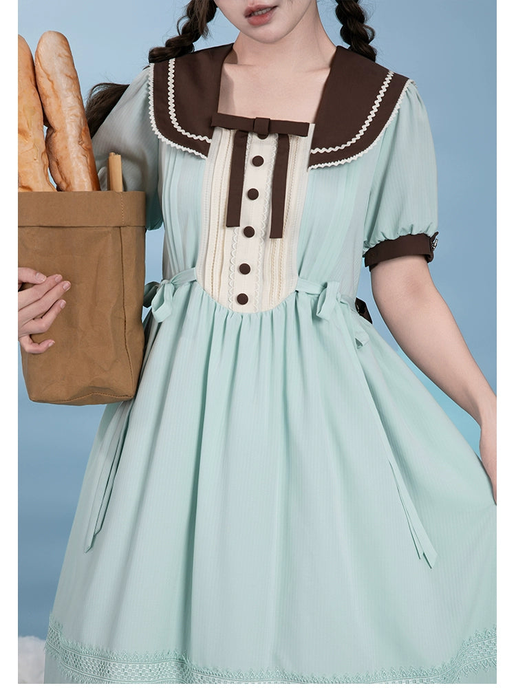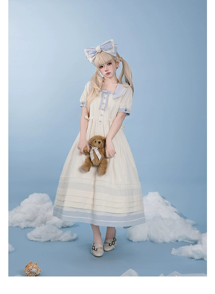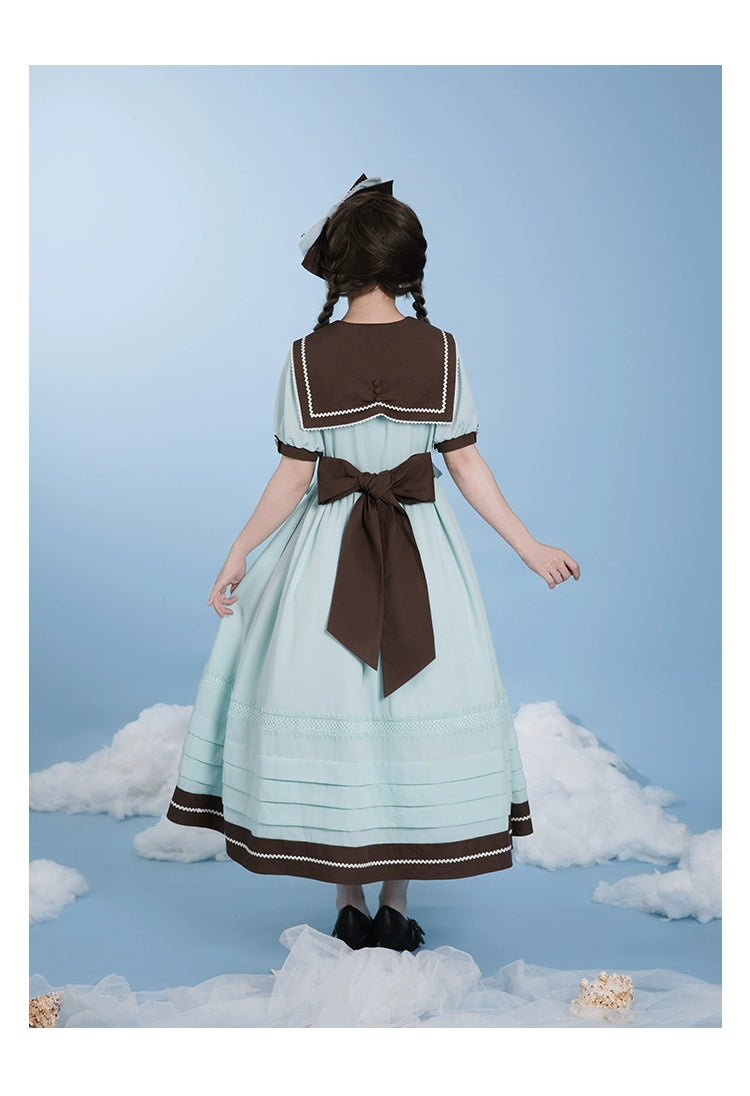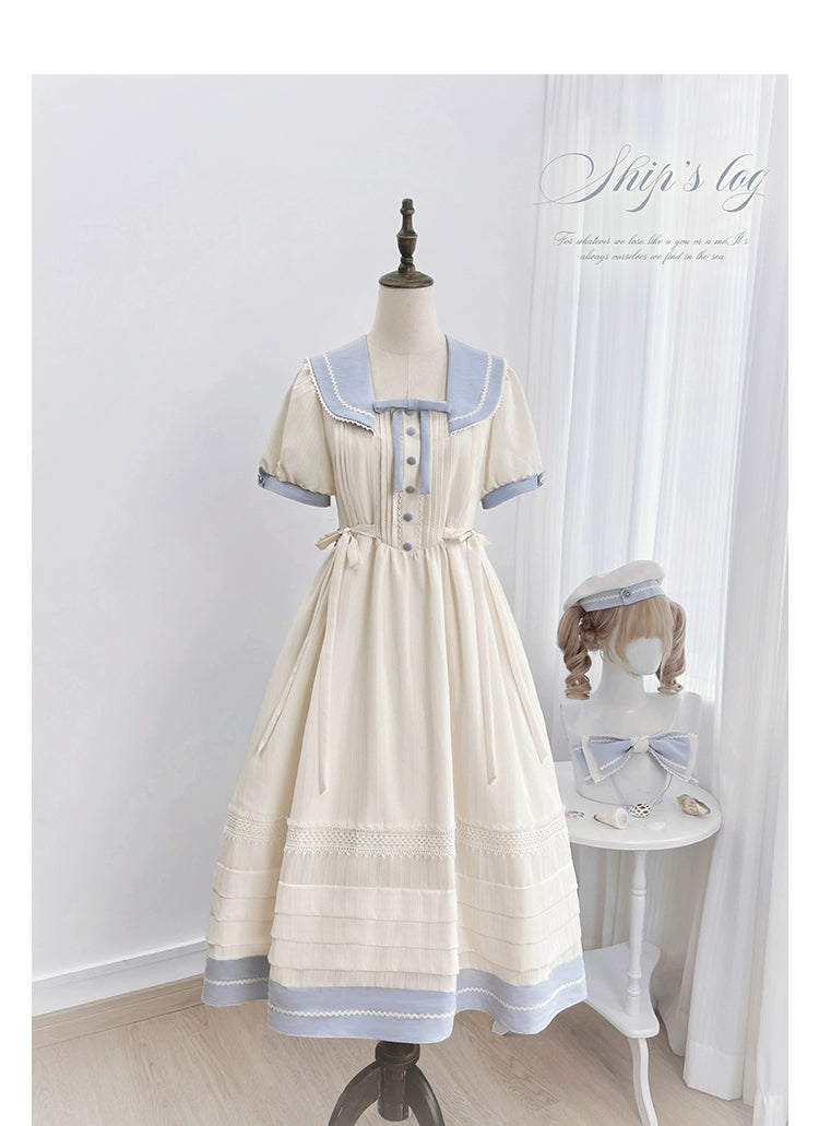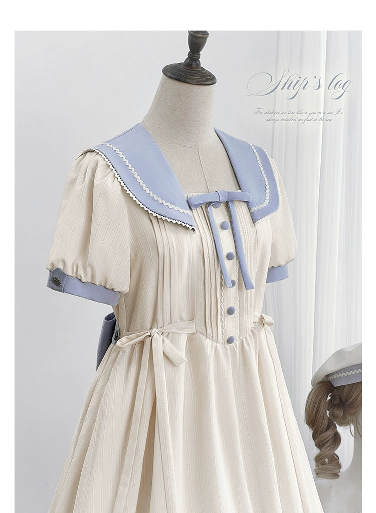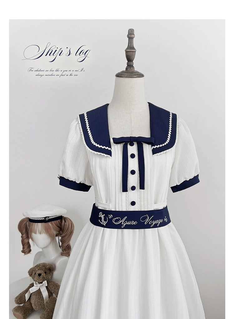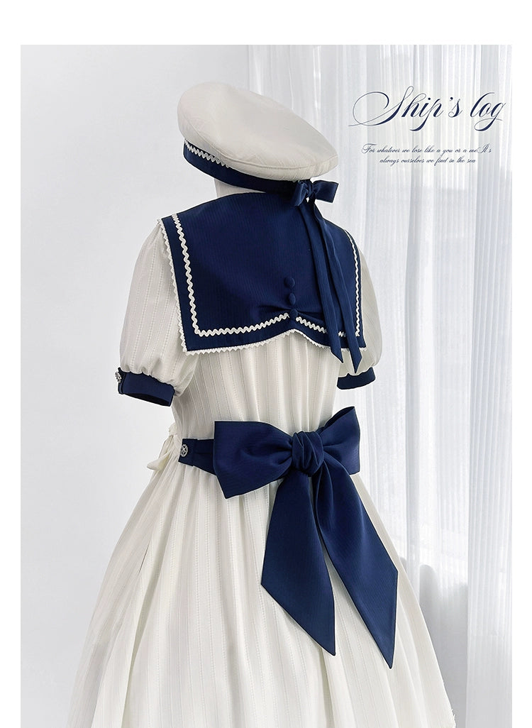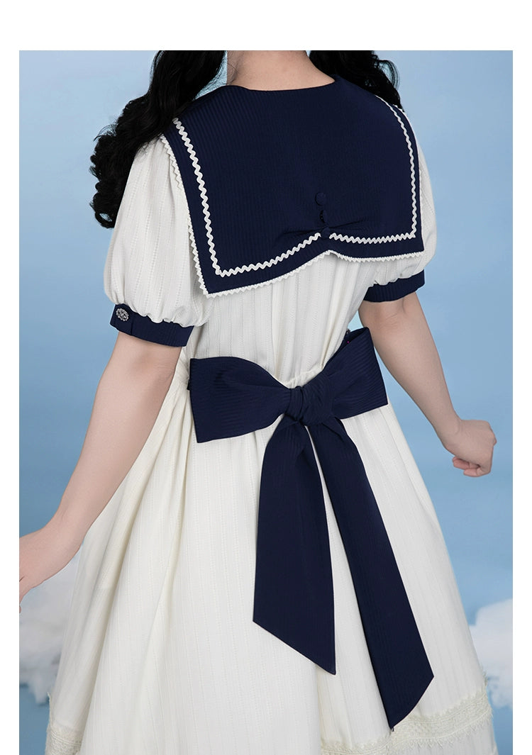 清楚で愛らしいセーラー襟が印象的な、クラシカルマリンスタイルのワンピース。