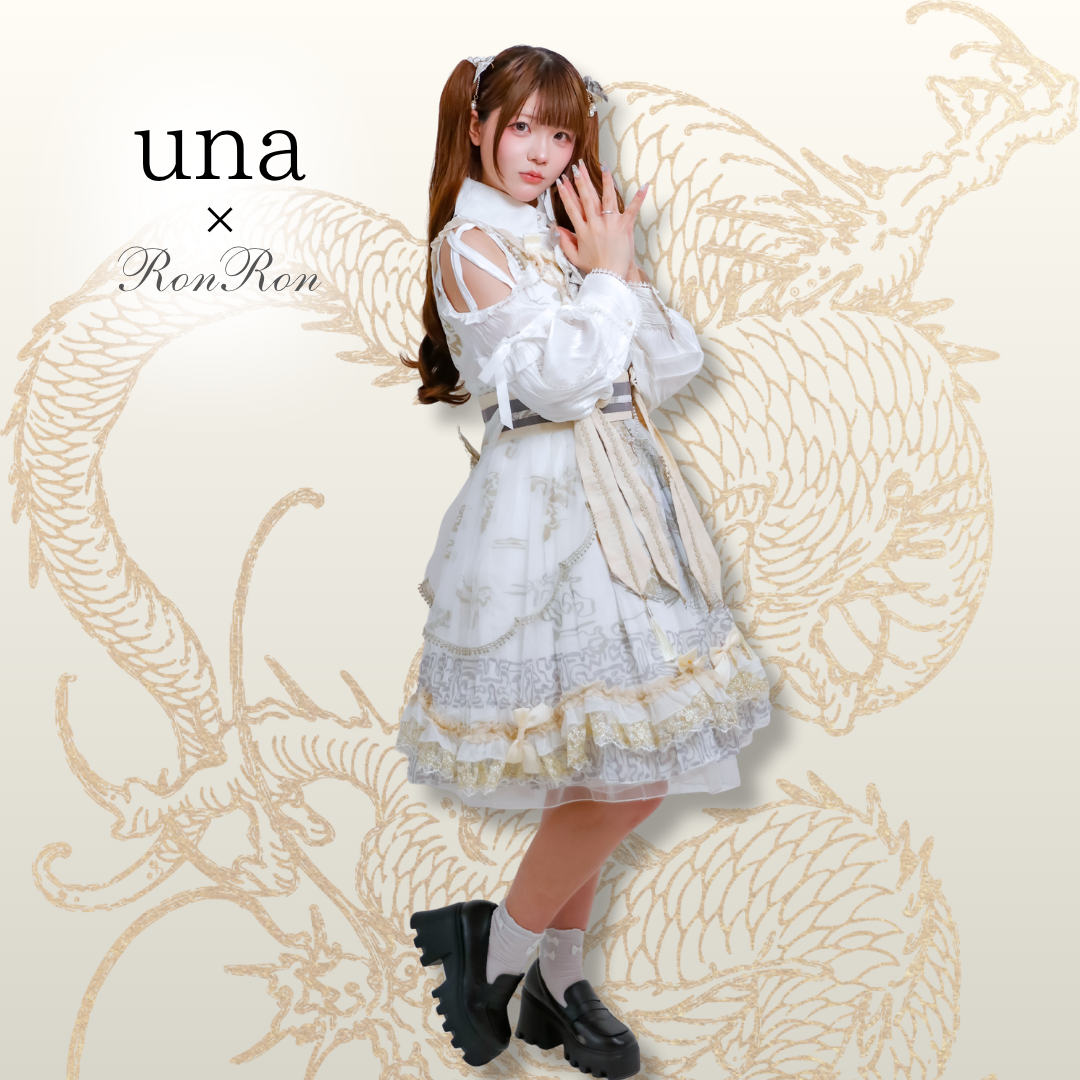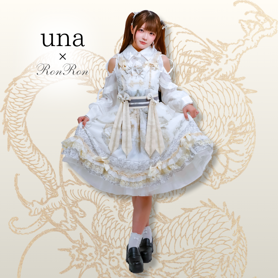 A jumper skirt with a fantastic atmosphere with a dragon drawn on it. Comes with ribbon hair accessory.