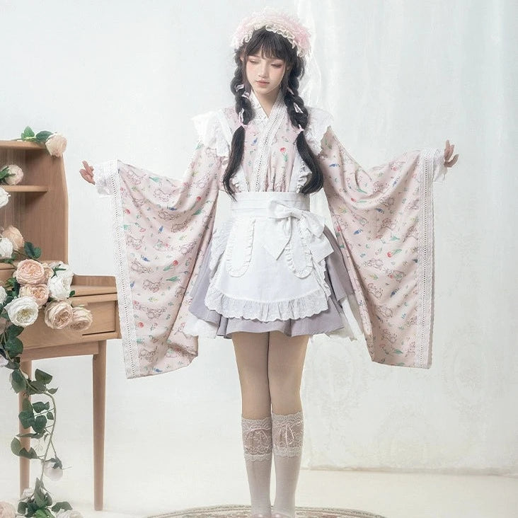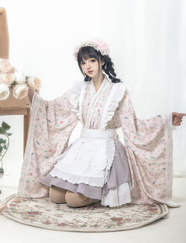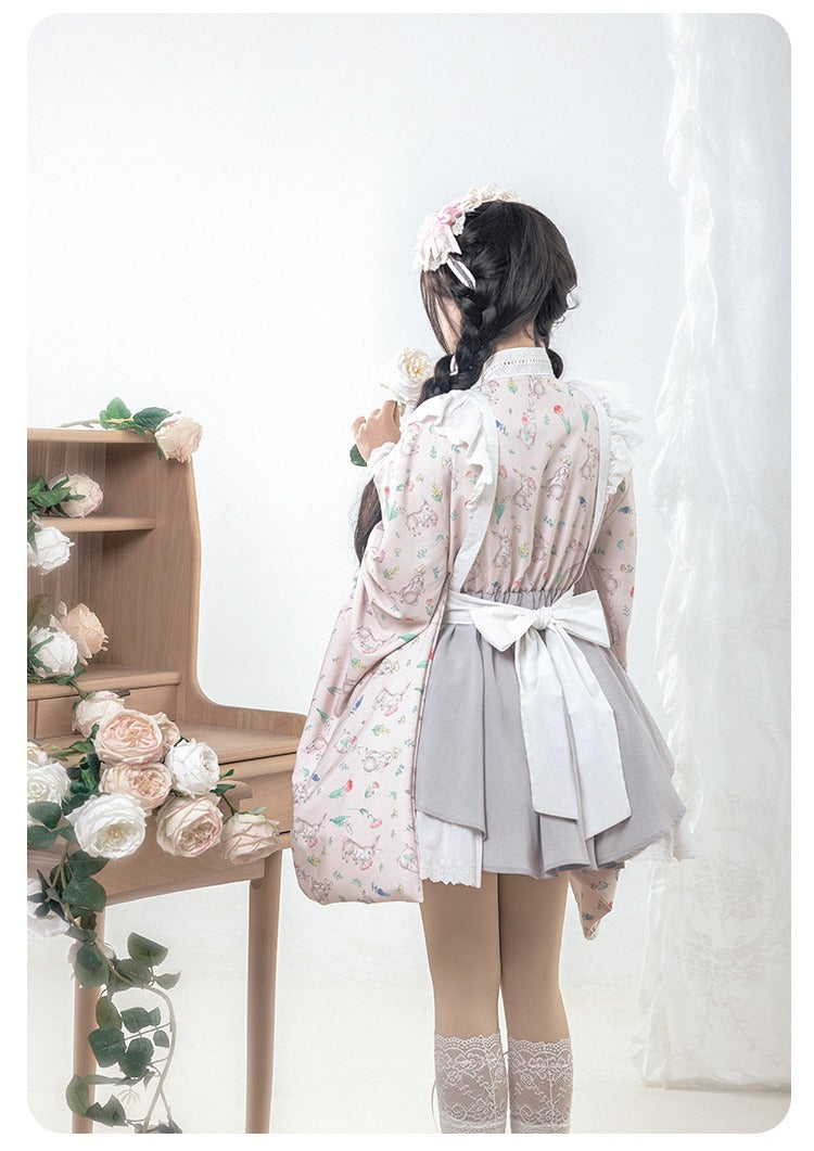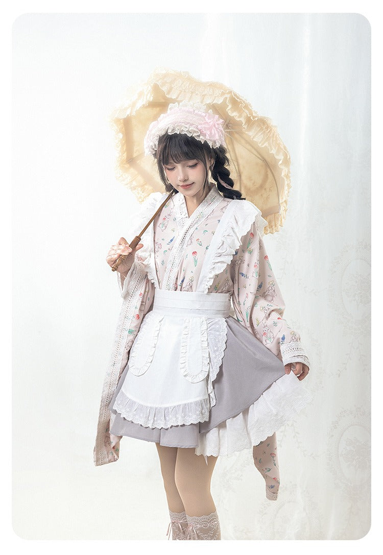 Hana Kikou Japanese Lolita Maid Style Apron Dress Short Length