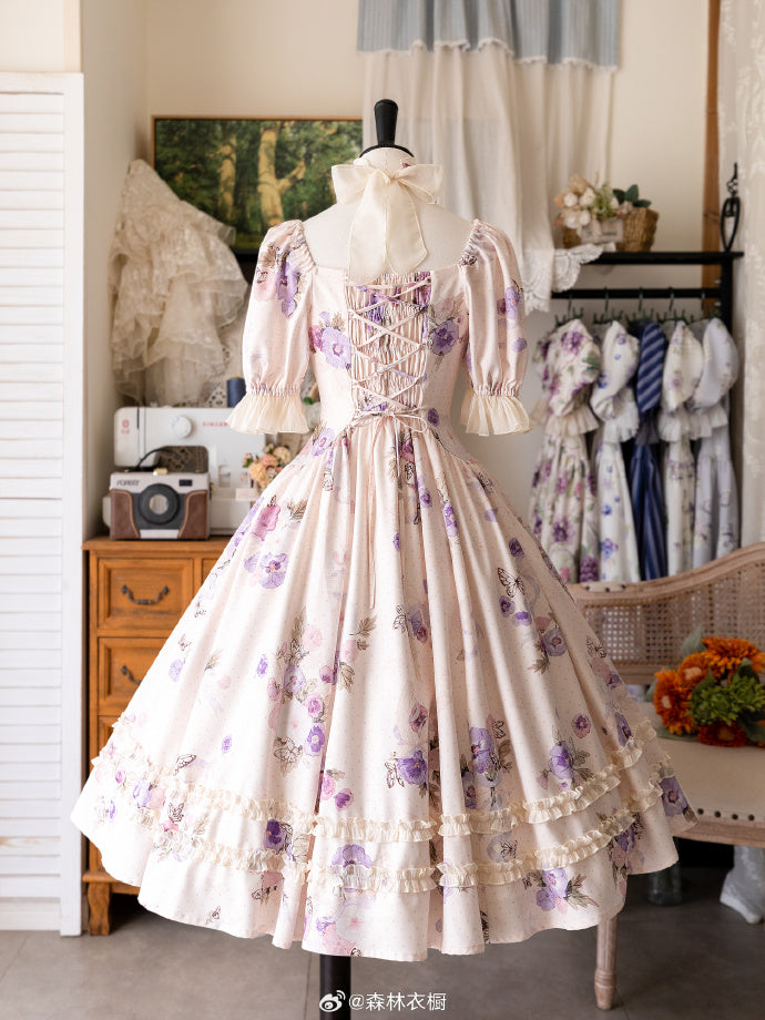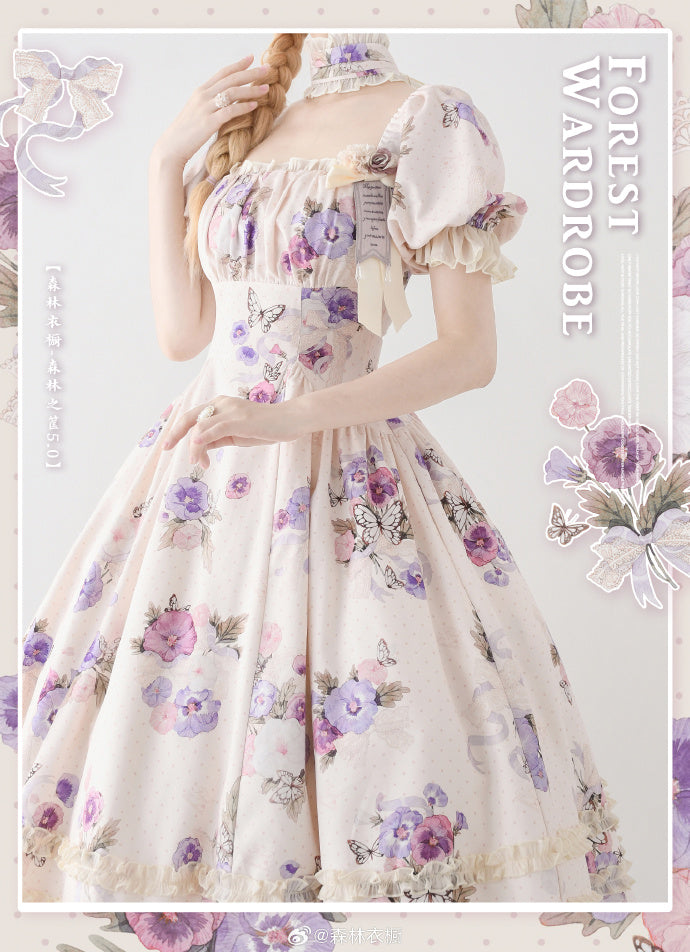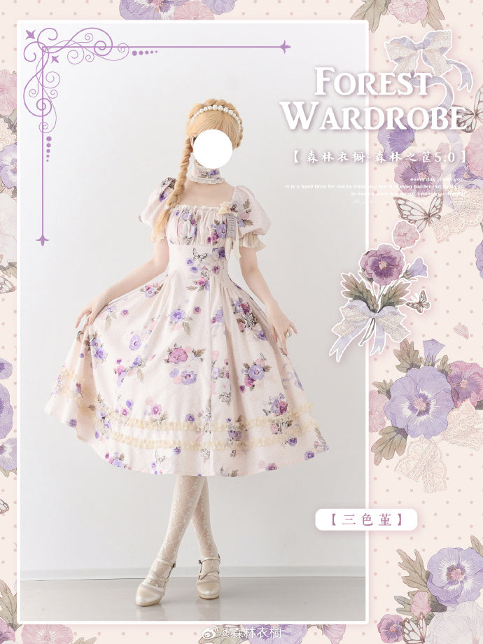 Forest Basket5.0 Classical Dress, Pansy, with Choker and Hair Accessory