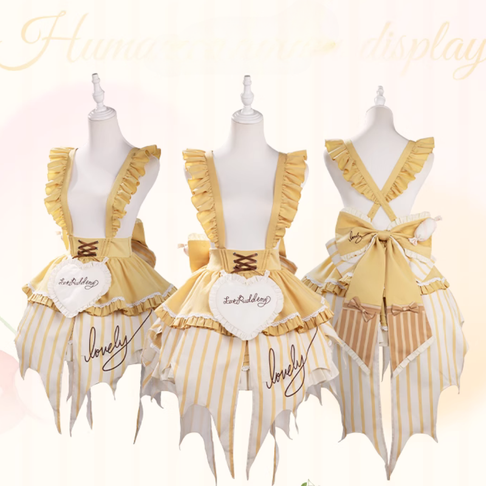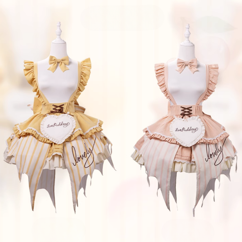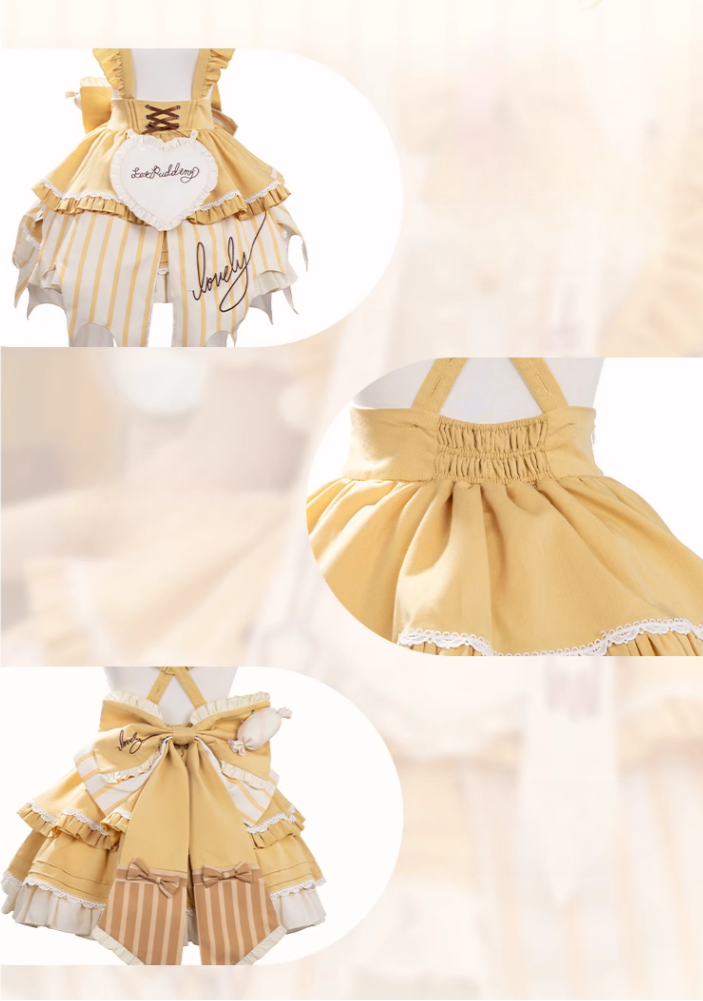 肩ストラップ、フロントのハートエプロン、背面のリボンは取り外し可能なのでお好みのスタイルで着られます♫