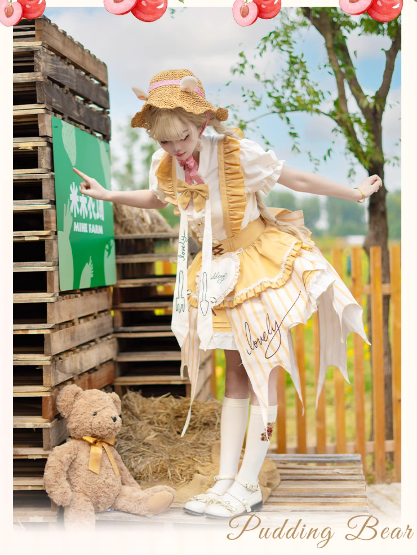 Fruit Pudding カフェエプロン風2wayサスペンダースカート