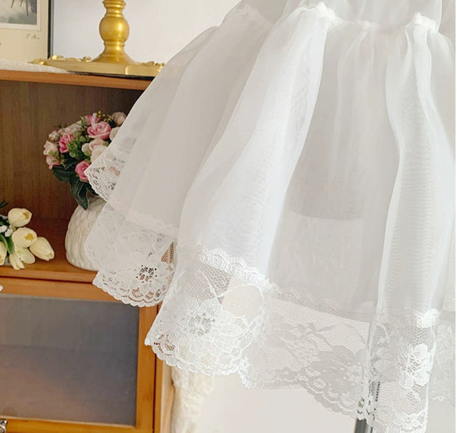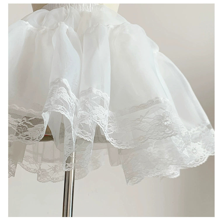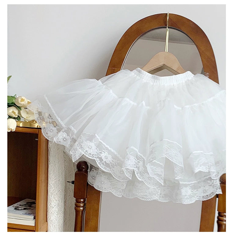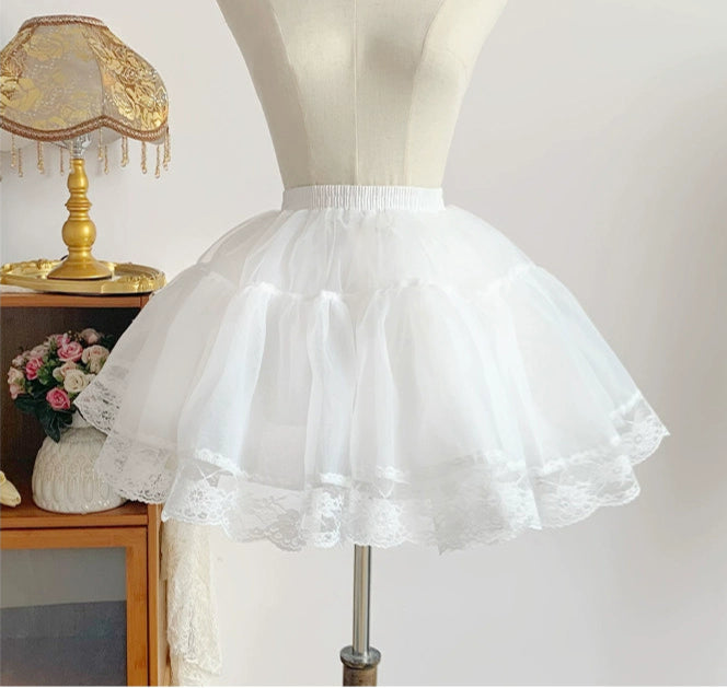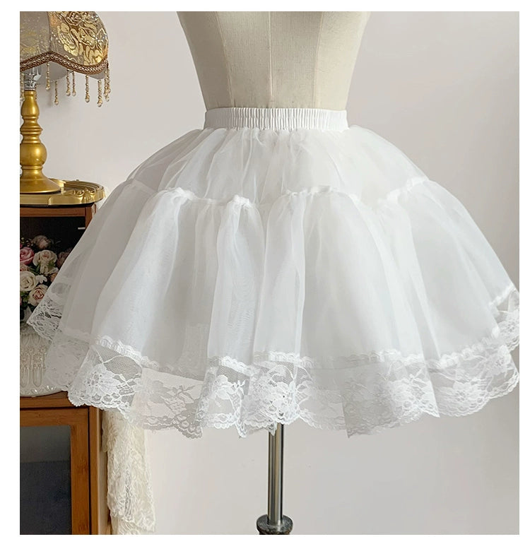 ふんわりとした自然なボリュームが出るパニエ。オーガンジー部分35cm+レース部分5cmの総丈40cm。
