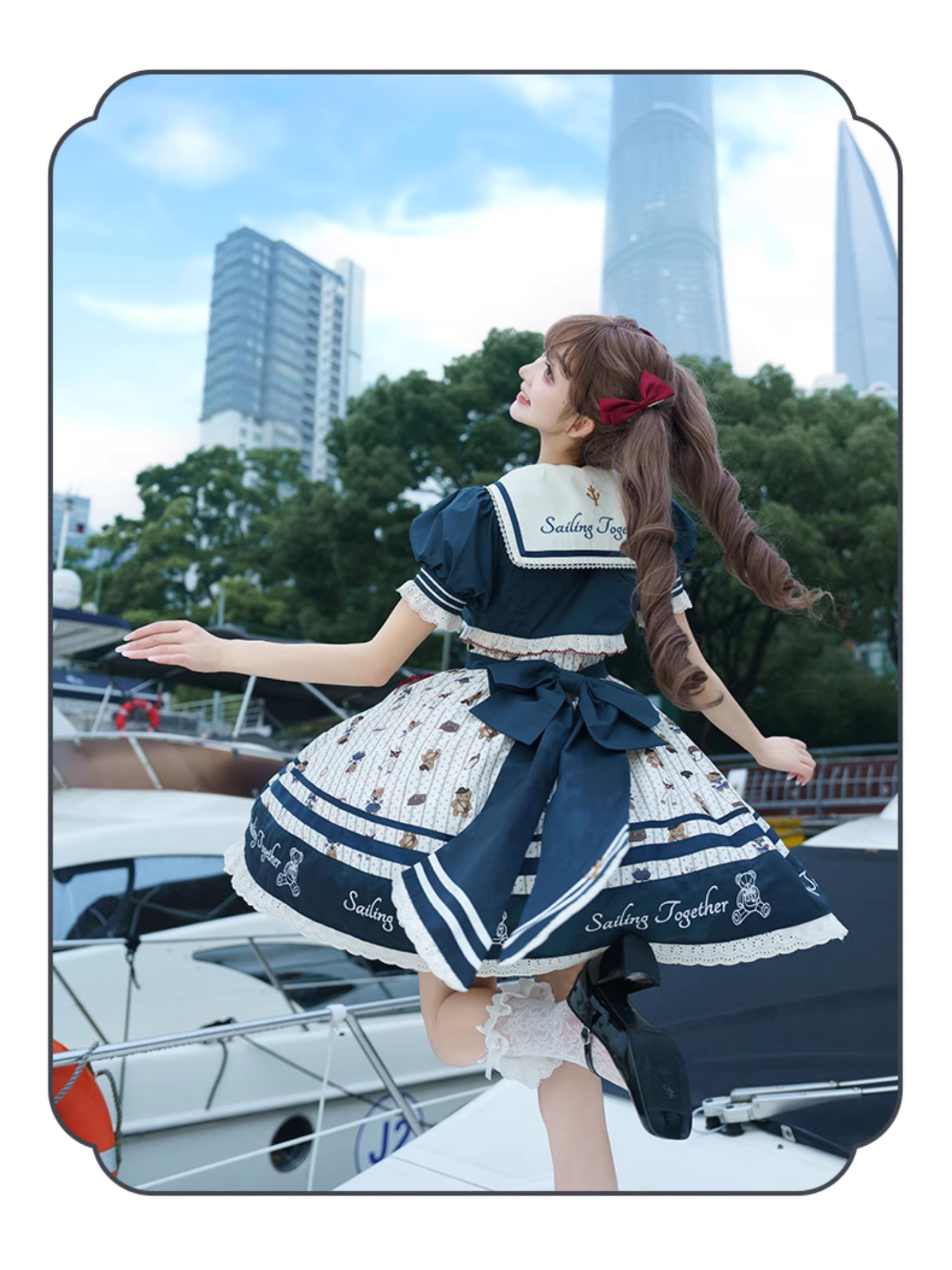 Marine Bear セーラーカラージャンパースカートとショート丈ジャケットセットアップ
