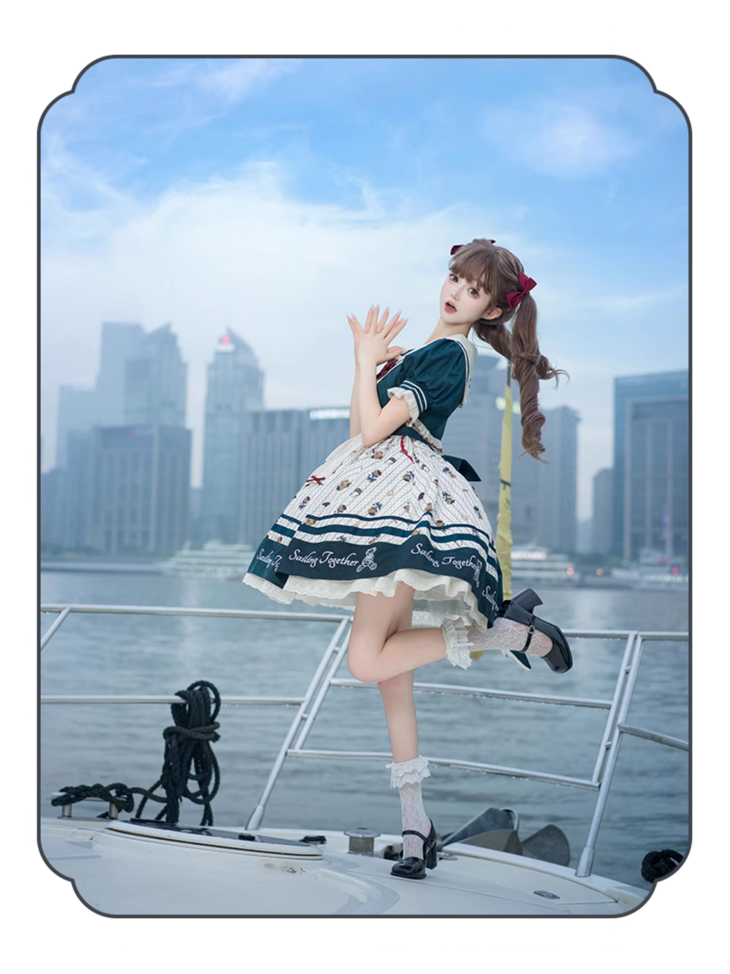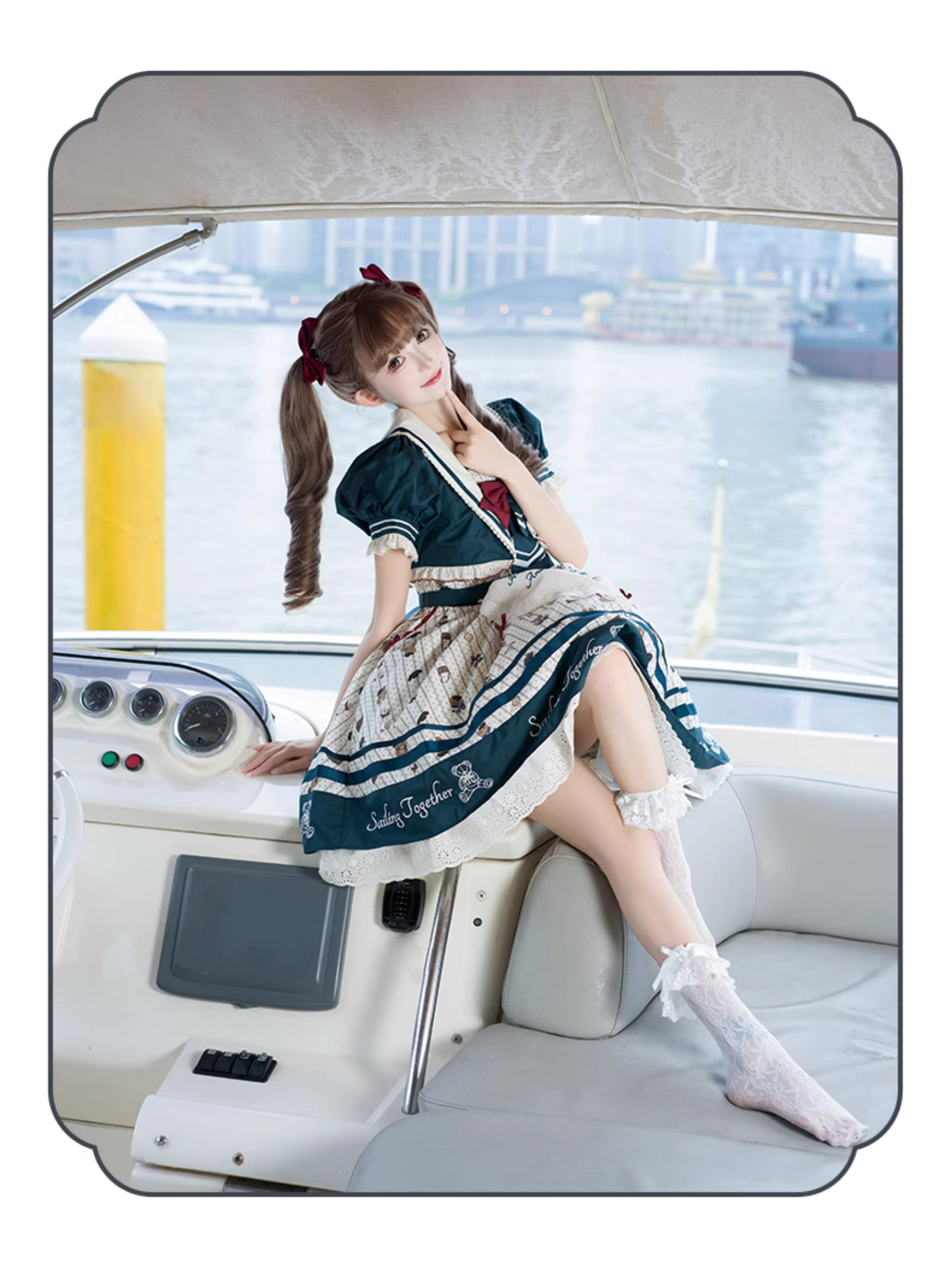 Pastel color bunny ear sailor collar dress