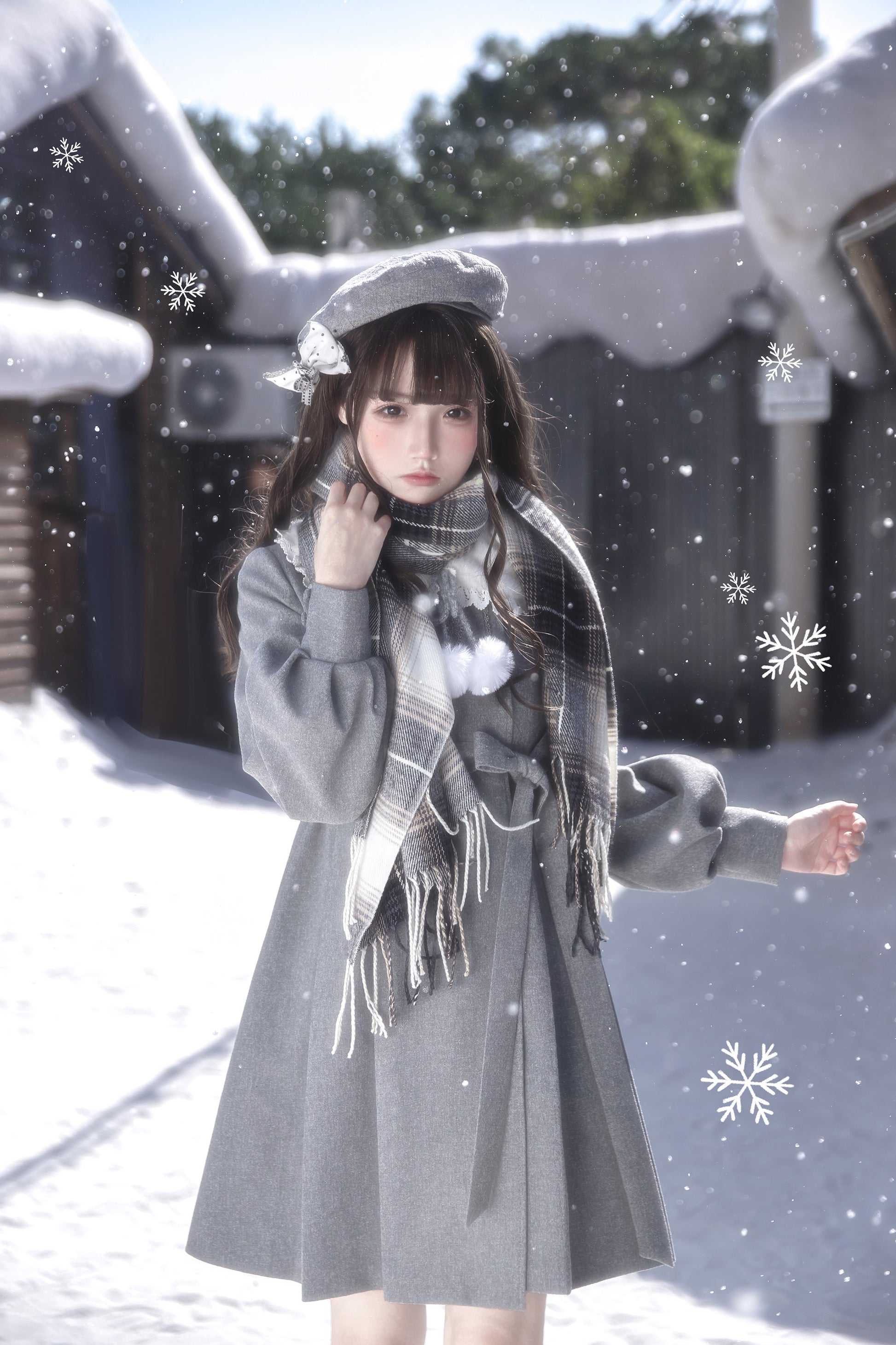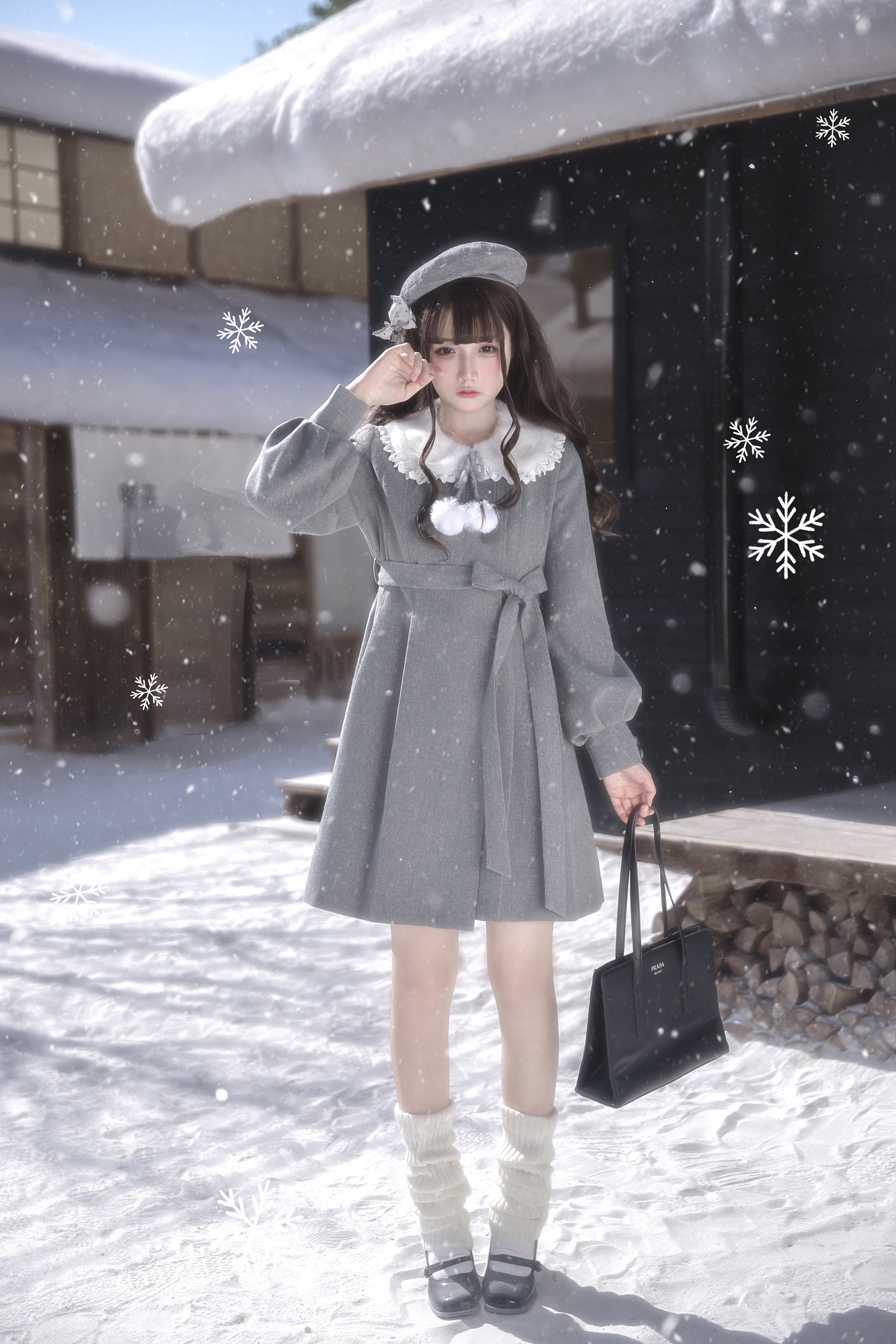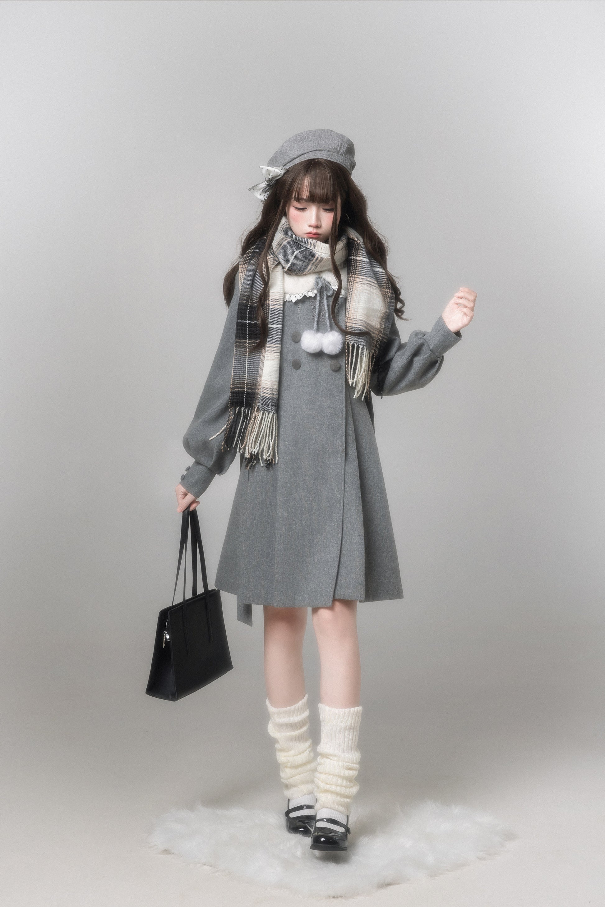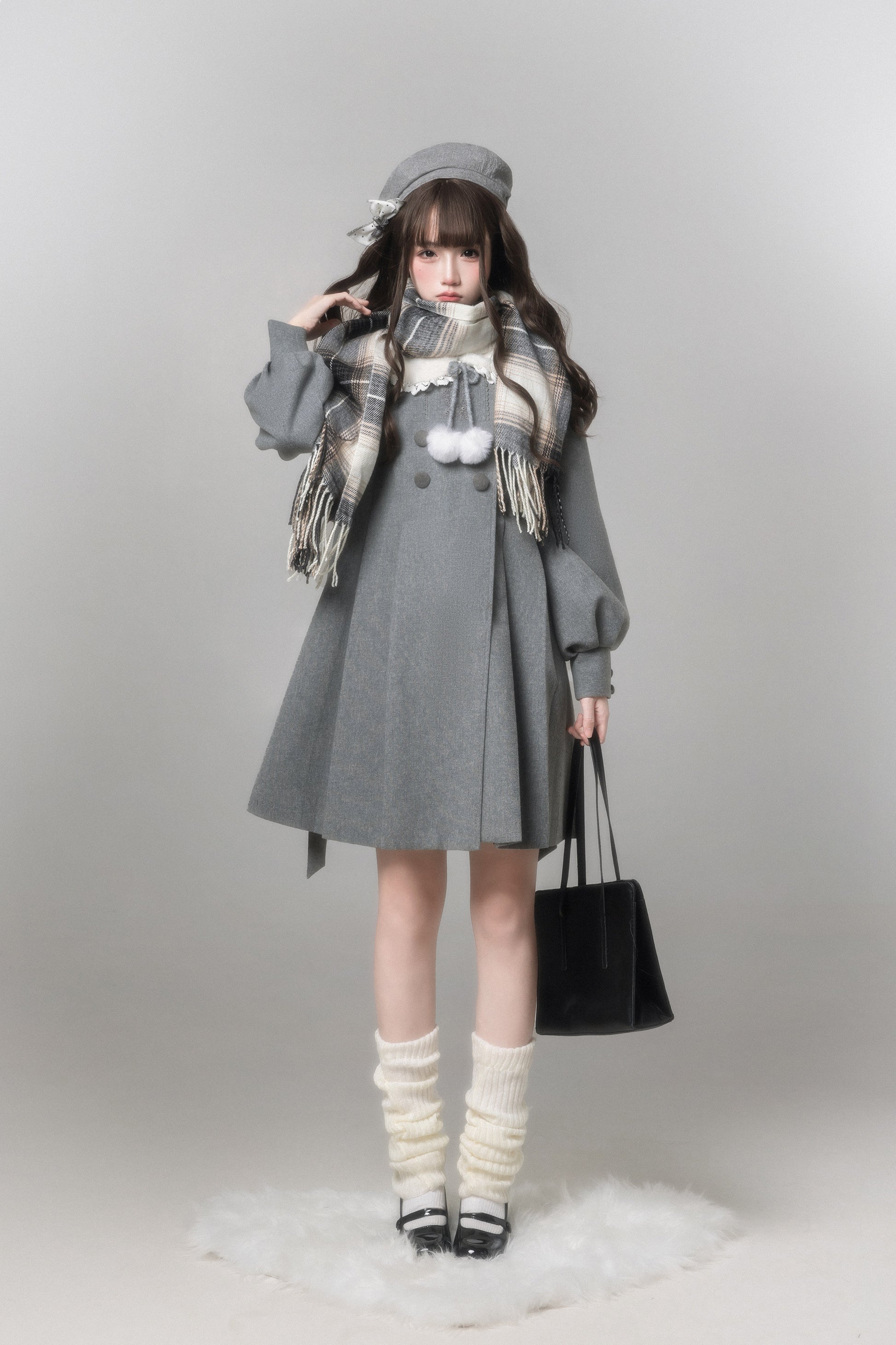 上品なグレーにレース、ポンポン付きの襟で甘さをプラスしたスイートなコート。
