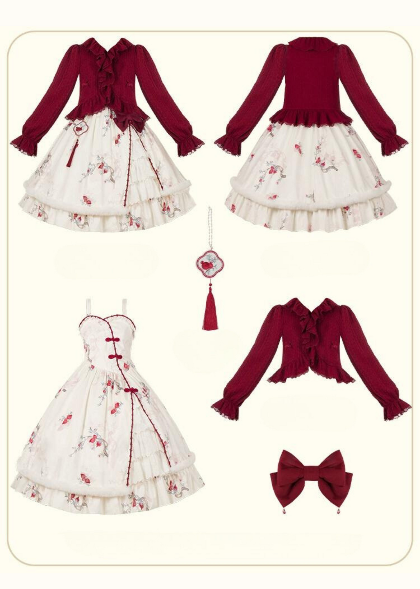 This page only sells the jumper skirt and cardigan. Blouses and other items are not included.