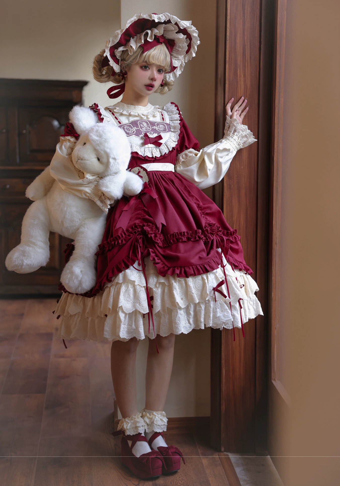 Ribbon Doll 3段フリルワンピースと付け袖 全3色