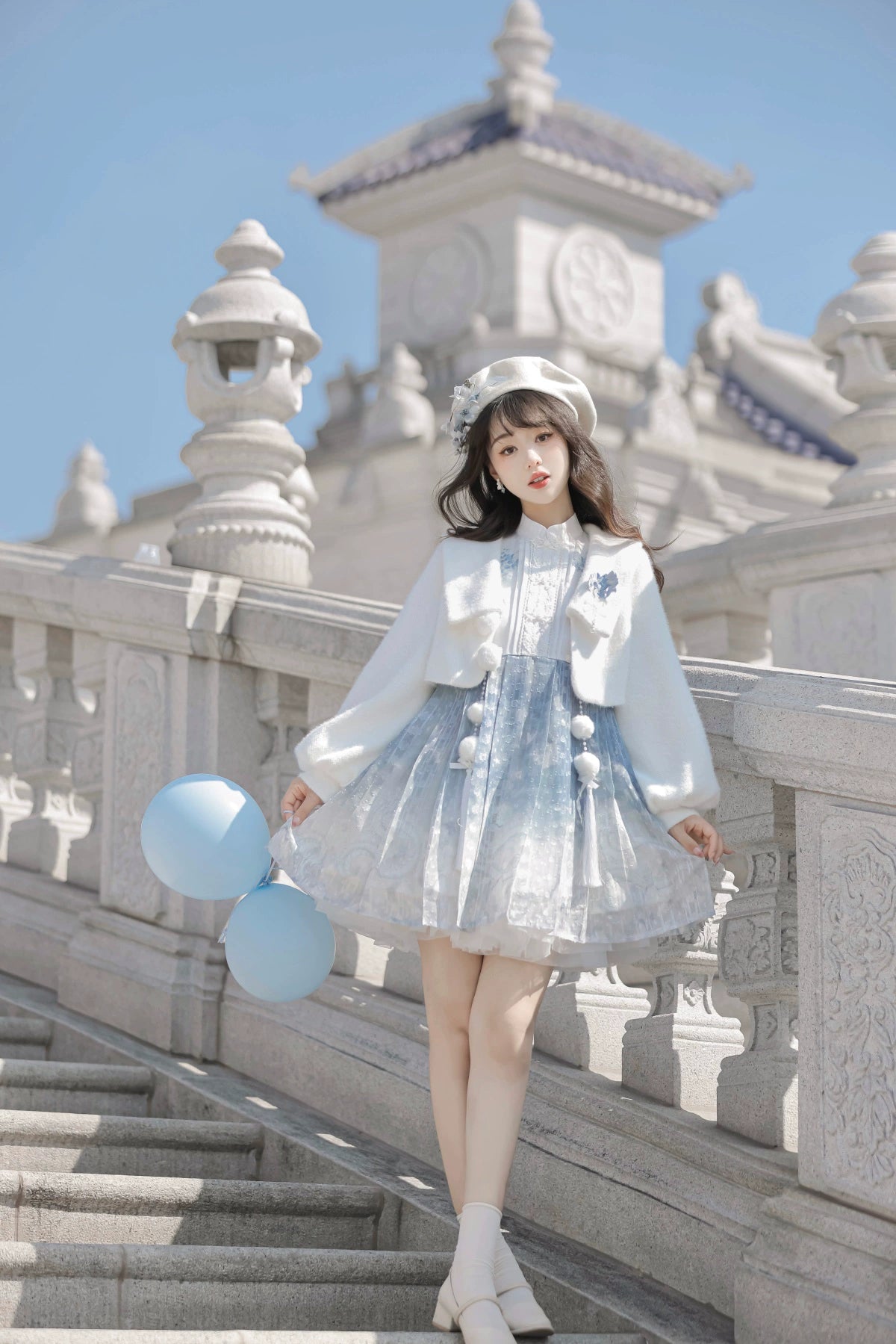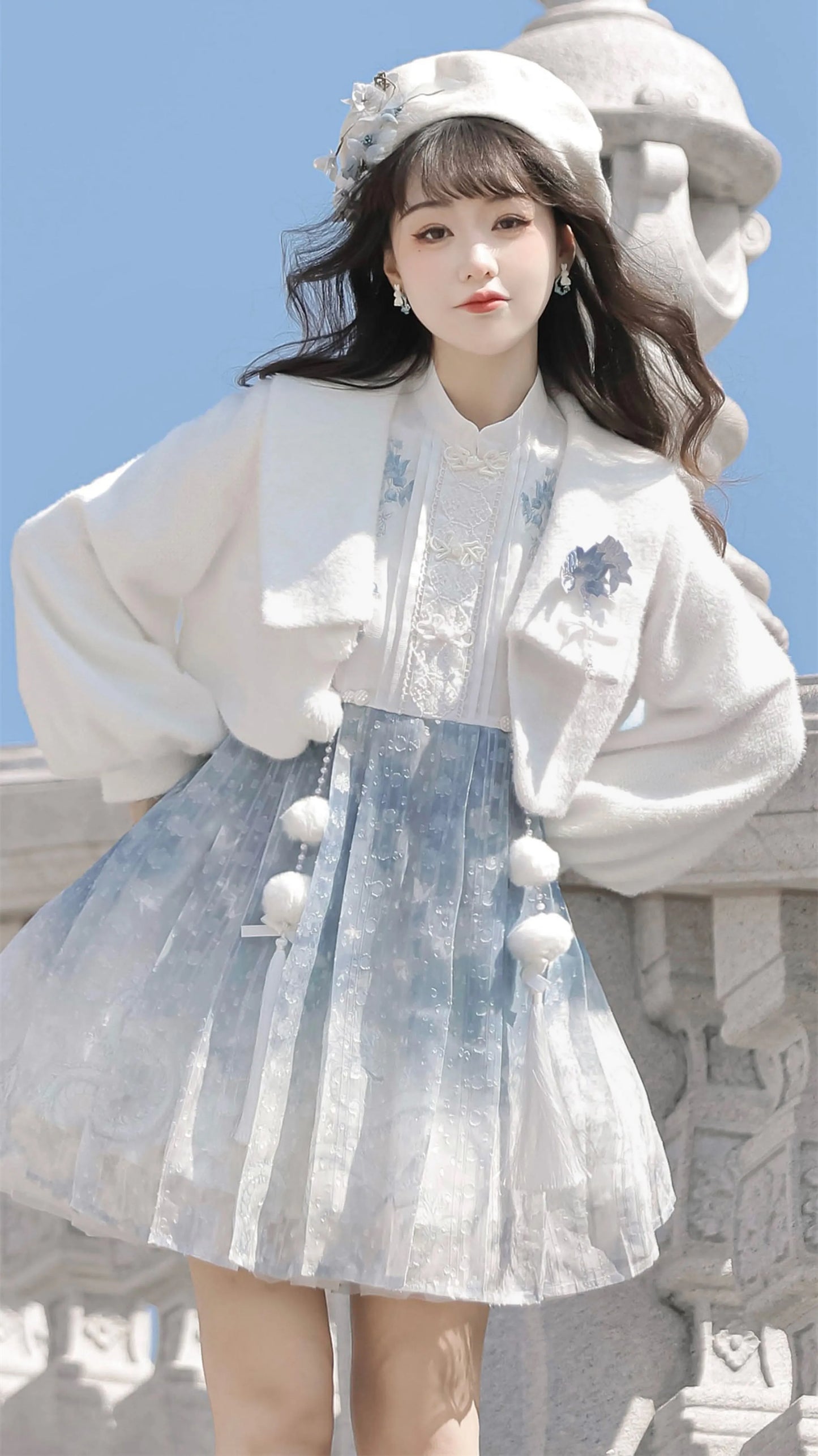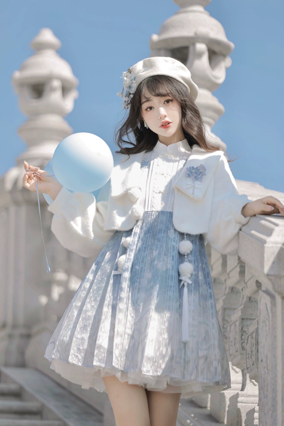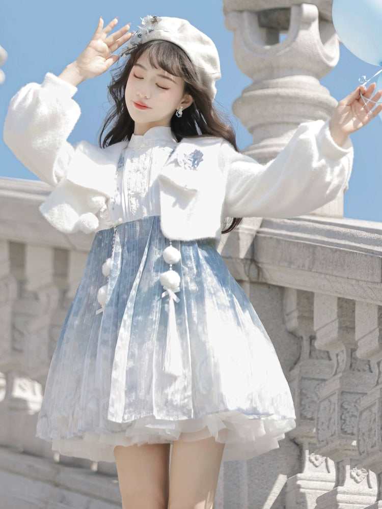 In warm seasons, wear just the dress for a cool look, and in chilly seasons, pair it with a pure white short jacket for a warm and fluffy look.