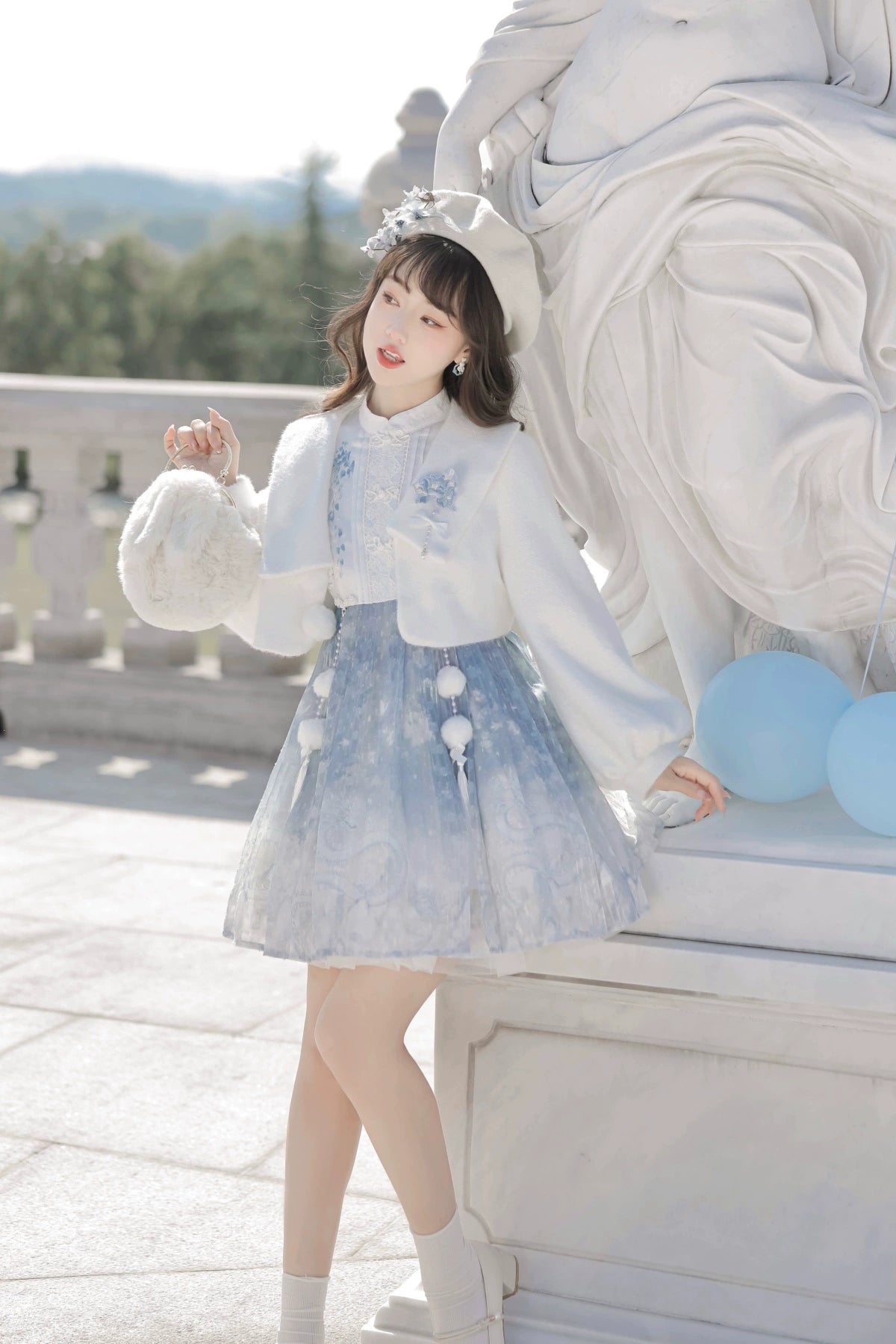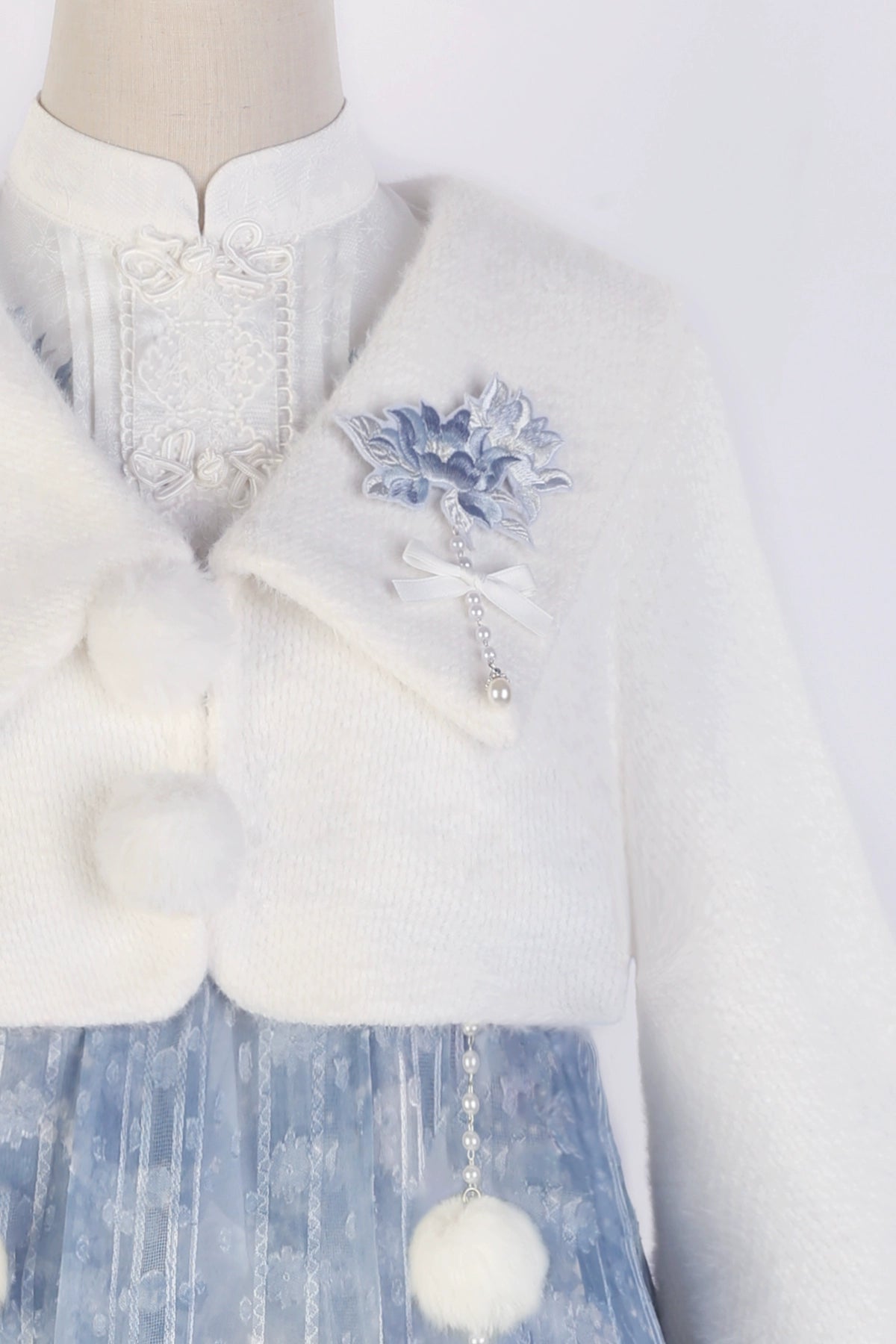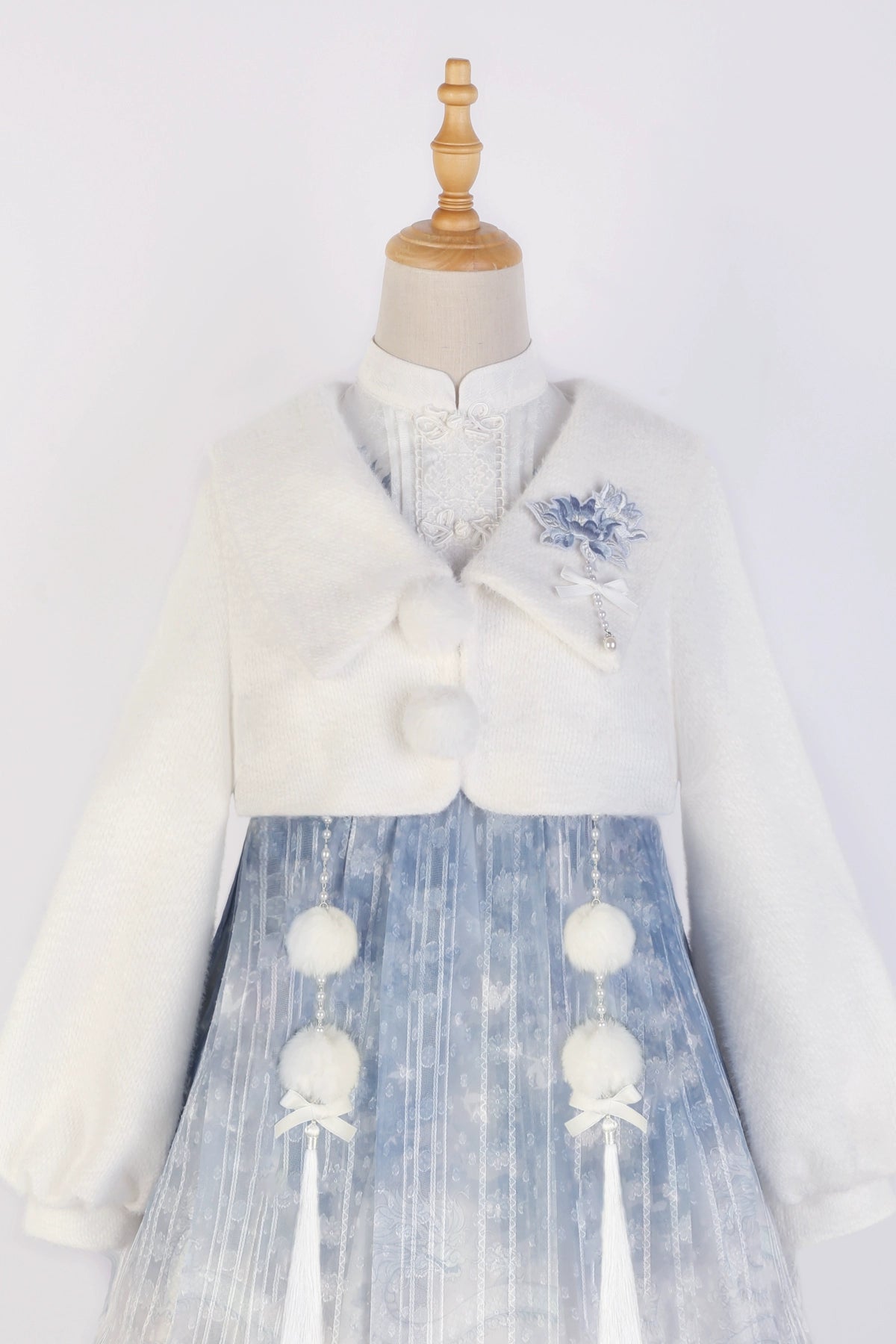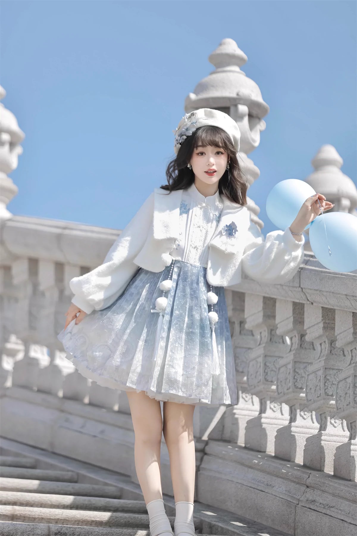 In warm seasons, wear just the dress for a cool look, and in chilly seasons, pair it with a pure white short jacket for a warm and fluffy look.