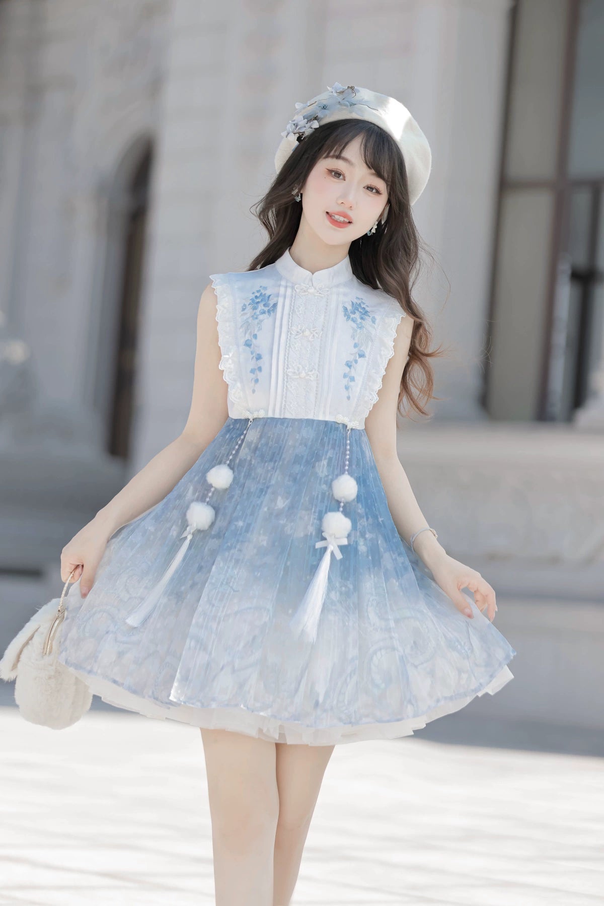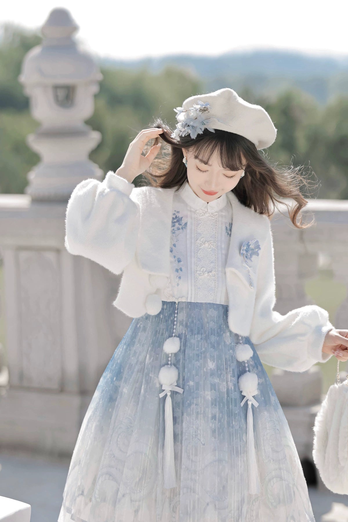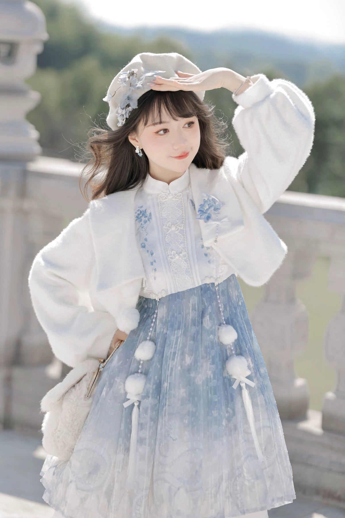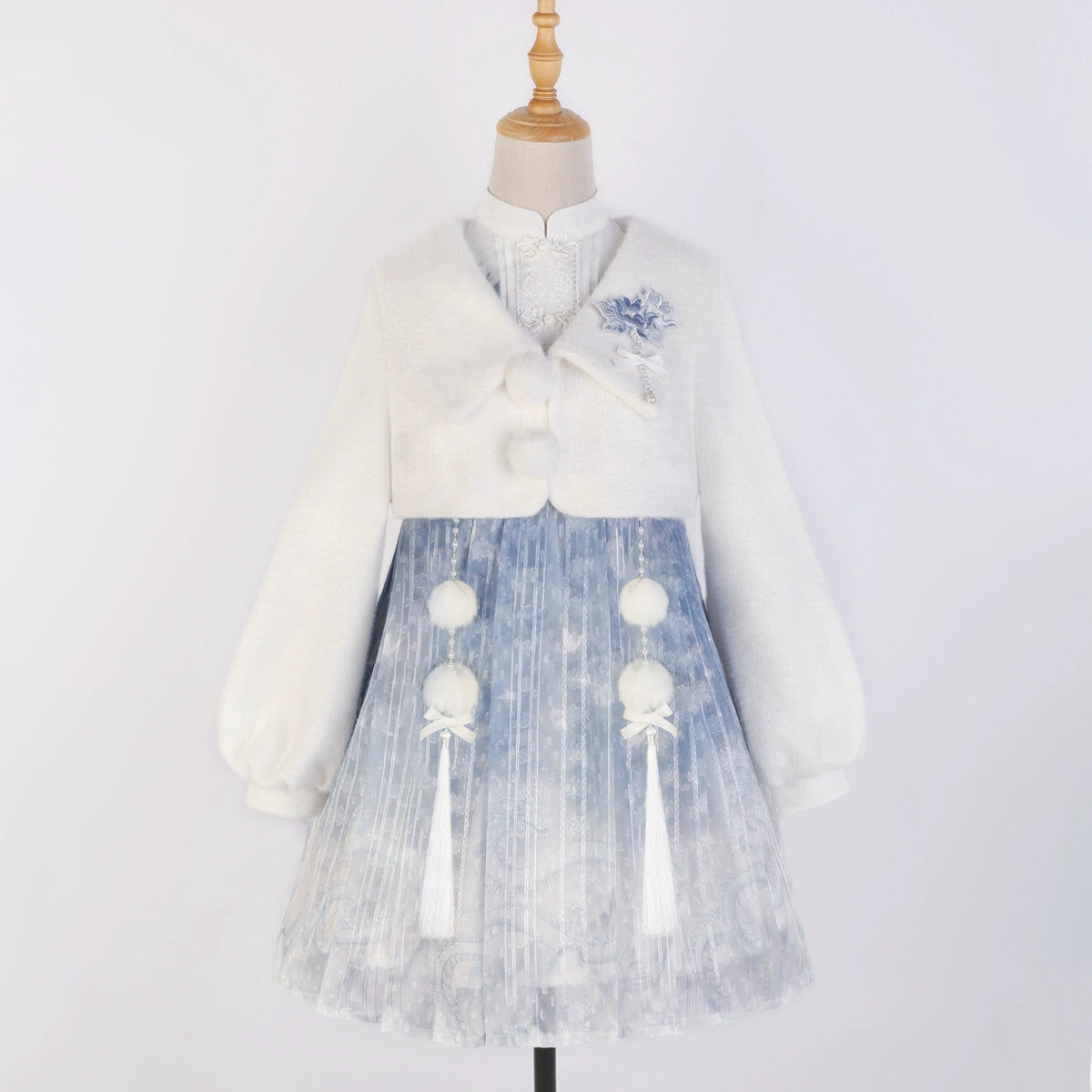 In warm seasons, wear just the dress for a cool look, and in chilly seasons, pair it with a pure white short jacket for a warm and fluffy look.