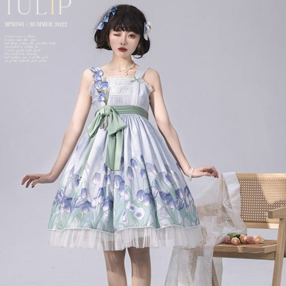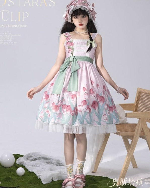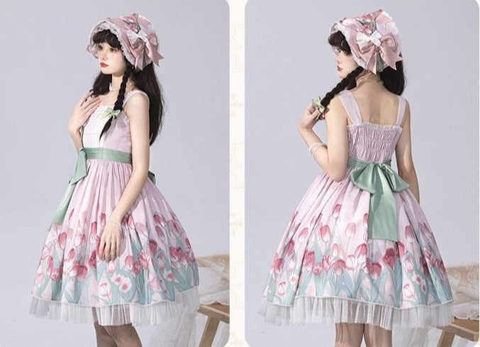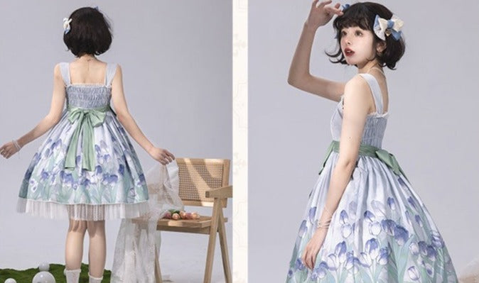 【限定特別価格】クラシカルリボンジャンパースカート・グレー +パニエ