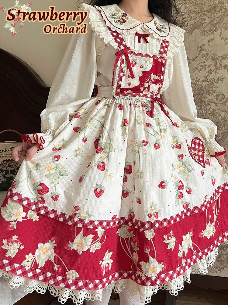 Strawberry Orchard Strawberry Embroidered Long Sleeve Blouse