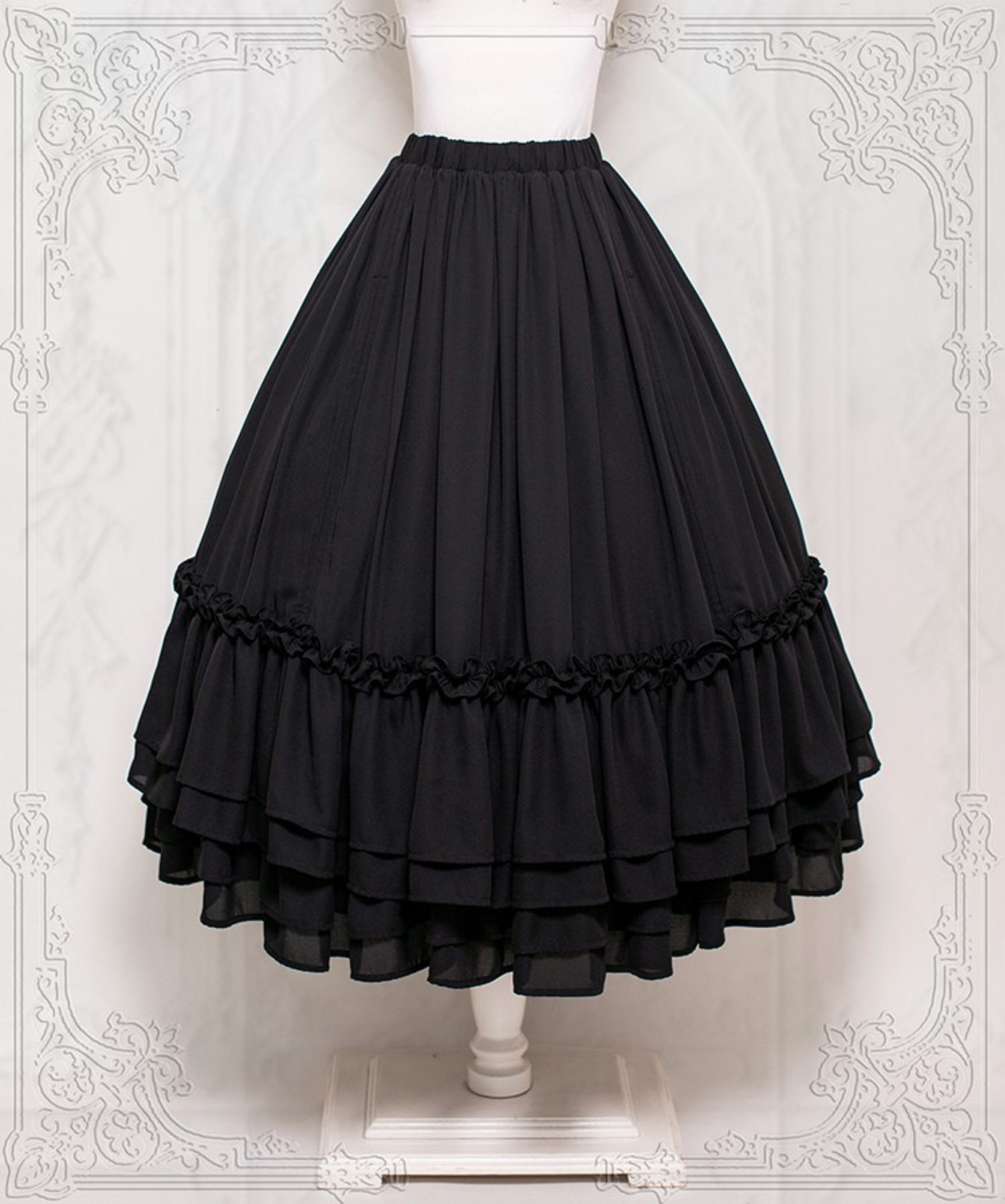 A dark-colored skirt with frills for a gothic look. We recommend pairing it with a matching top.