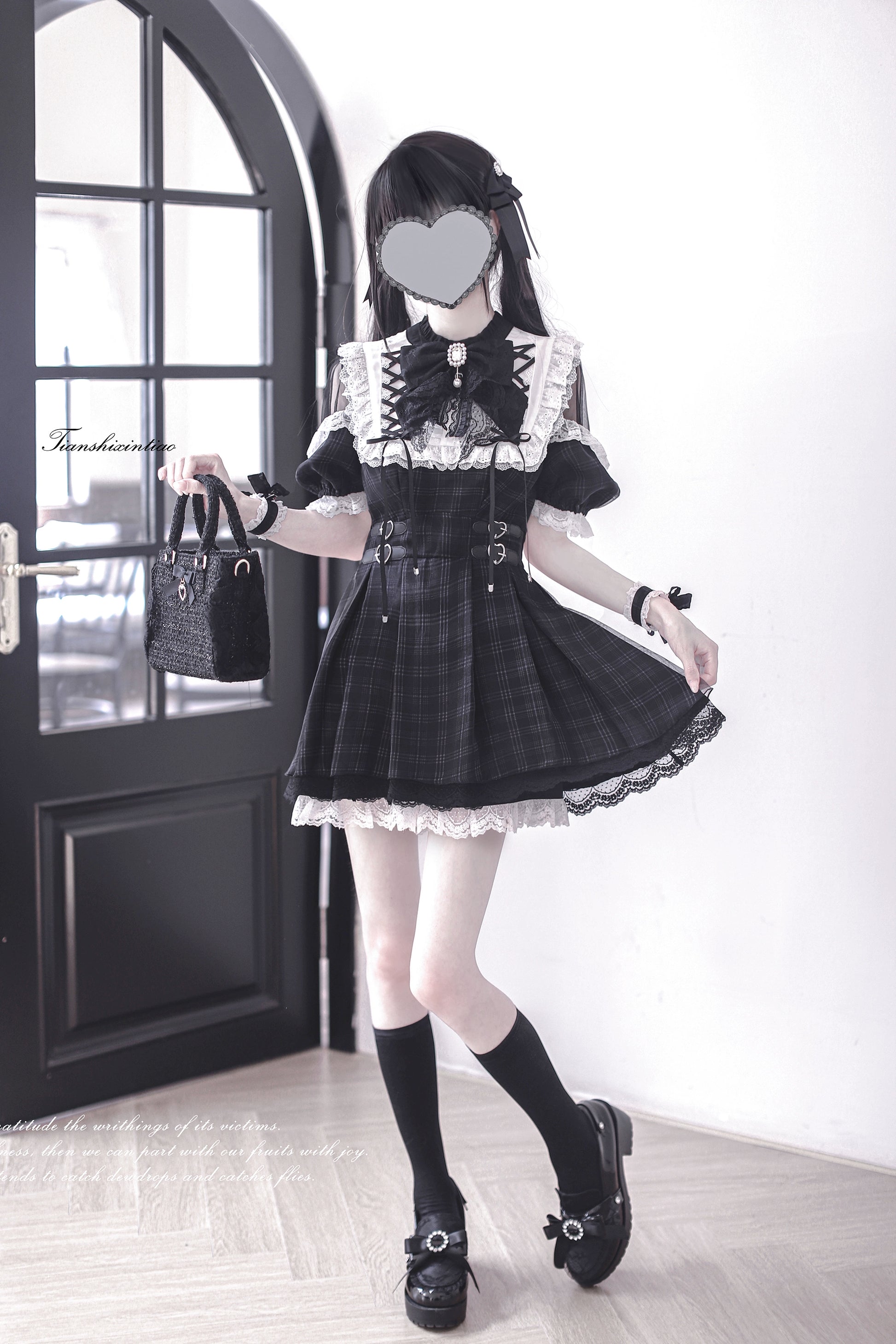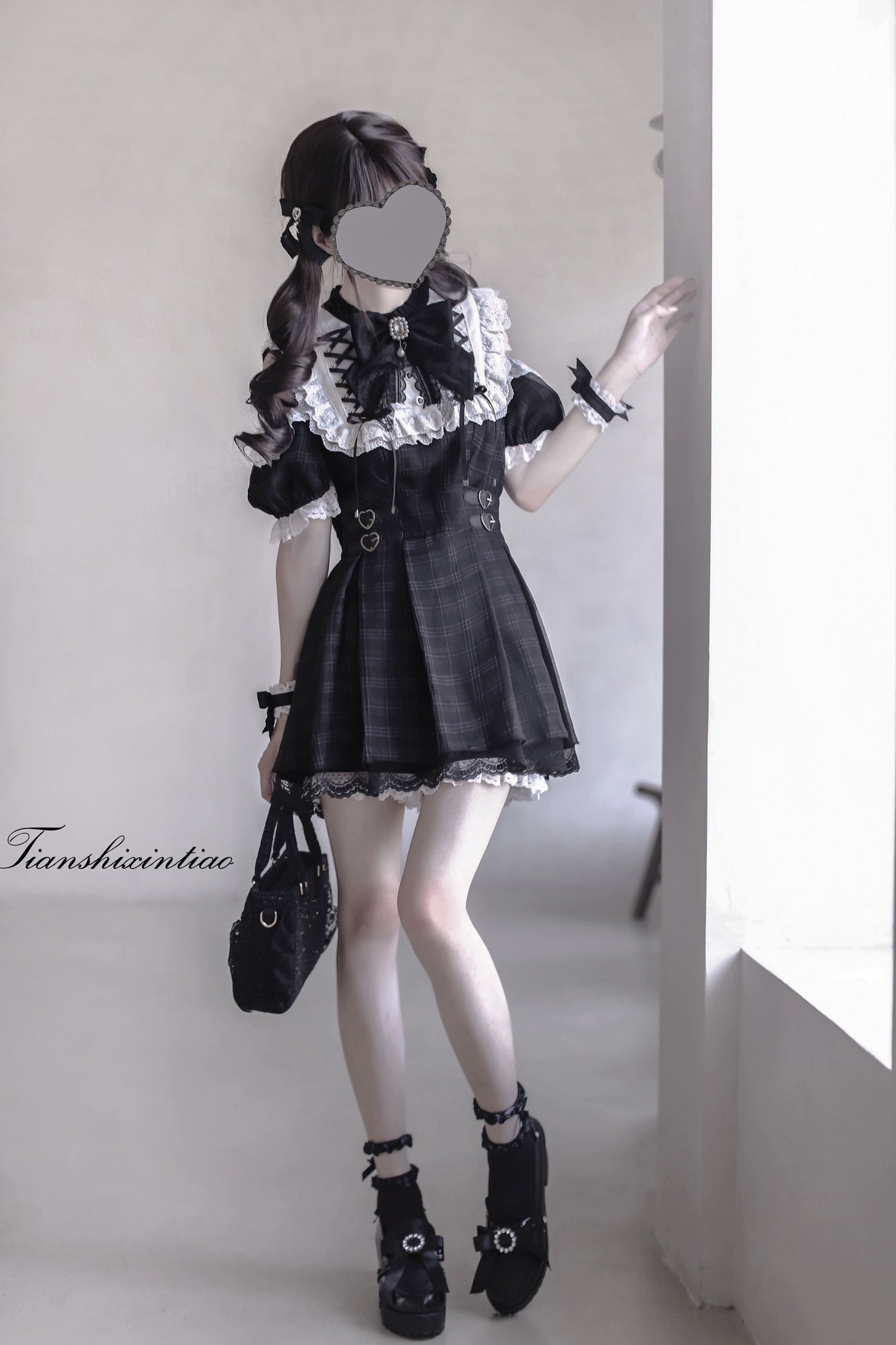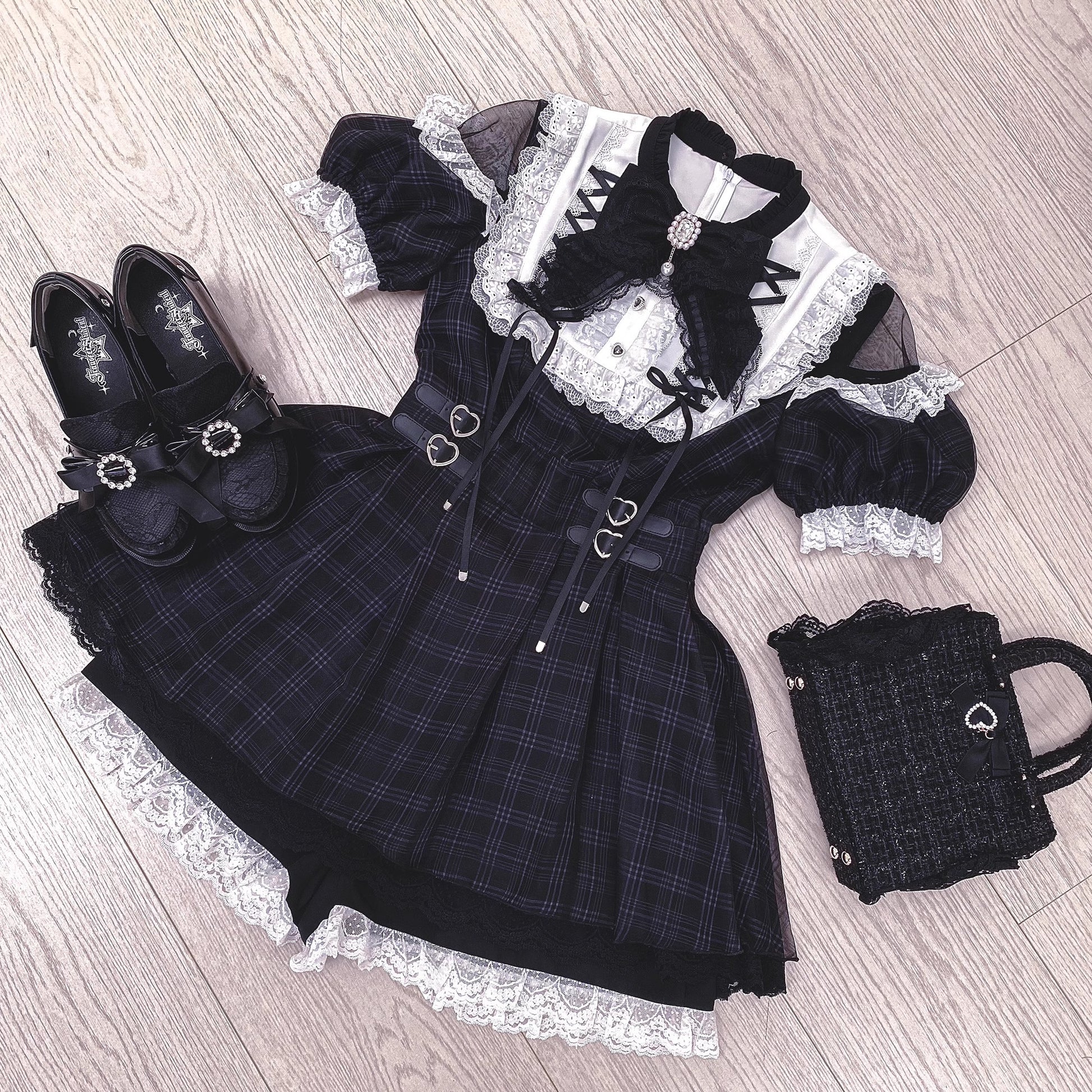 【予約販売】 Angel Heartbeat Black フリルチェックミニ丈ワンピース