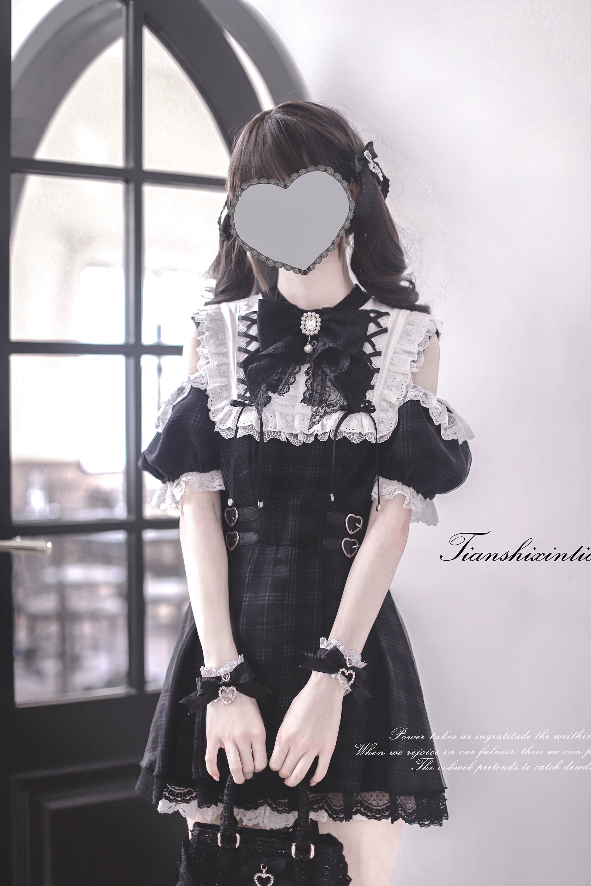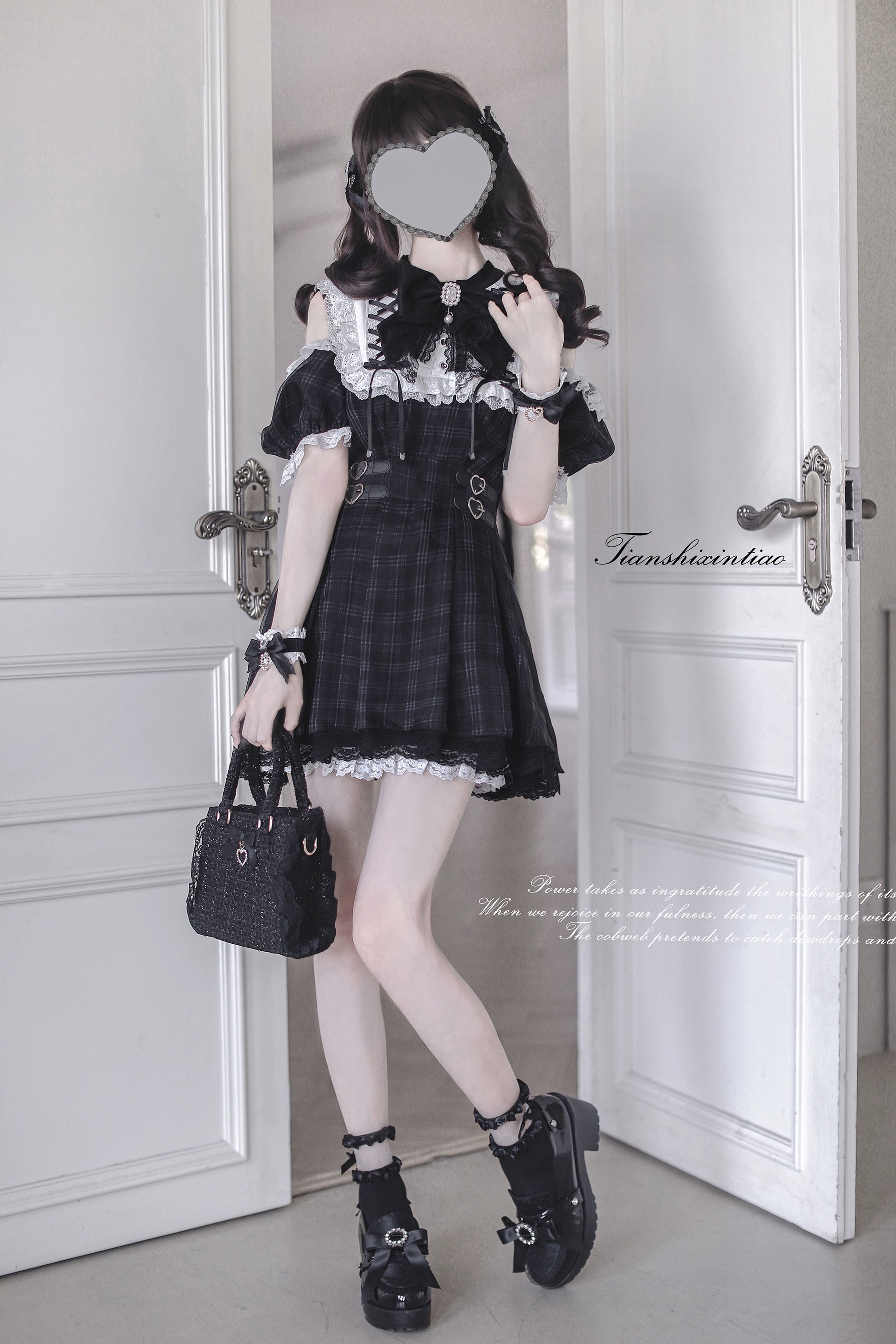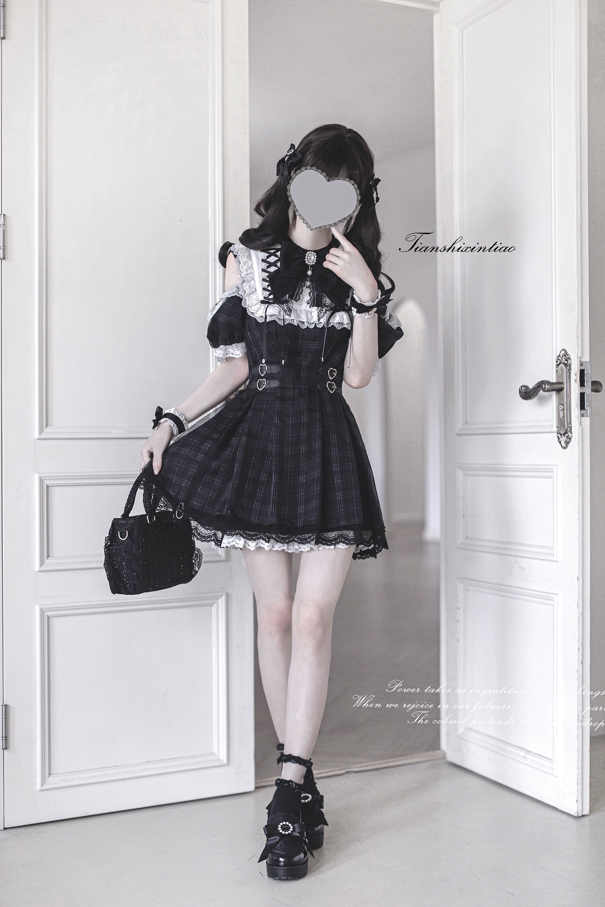 【予約販売】 Angel Heartbeat Black フリルチェックミニ丈ワンピース