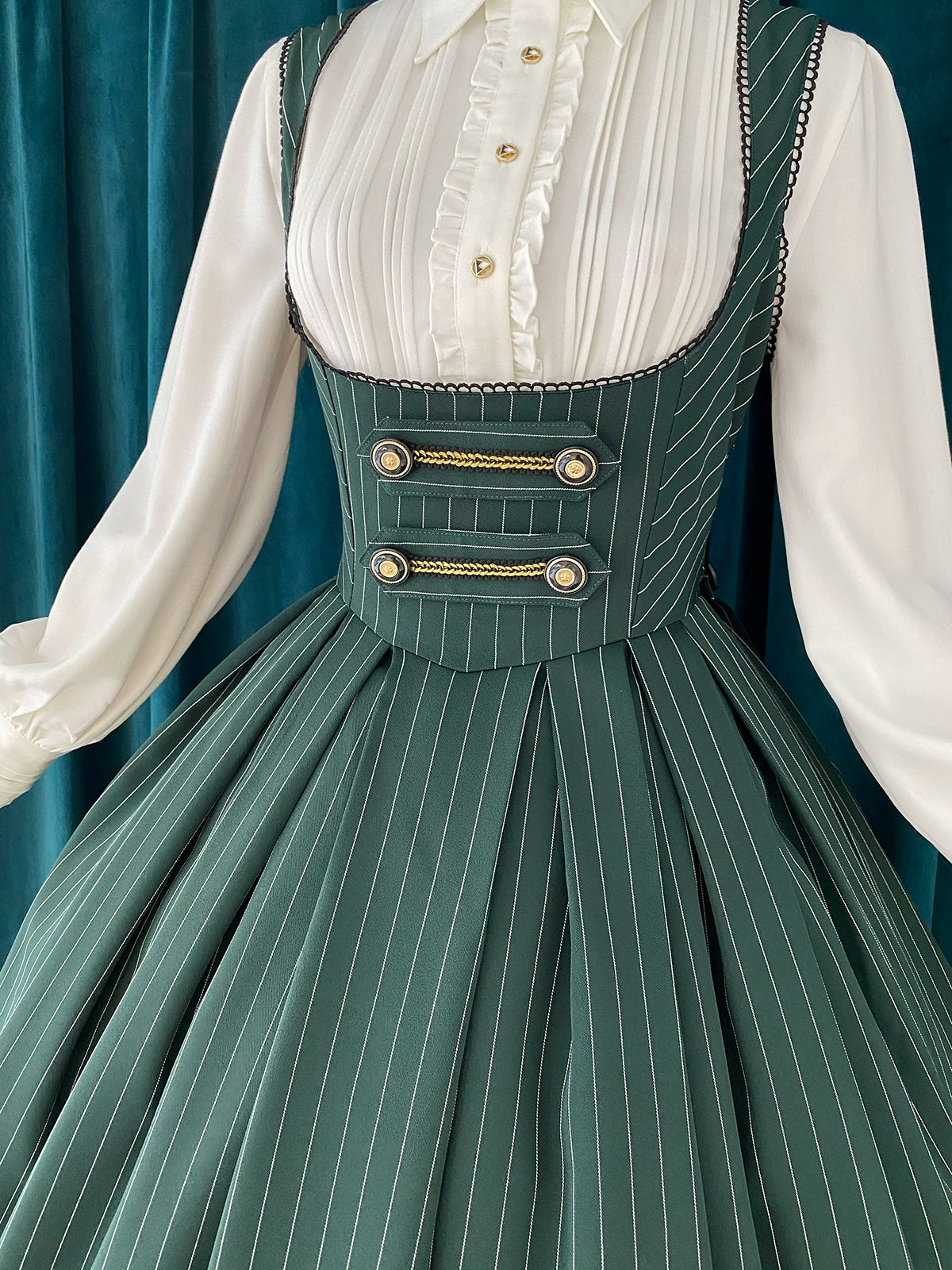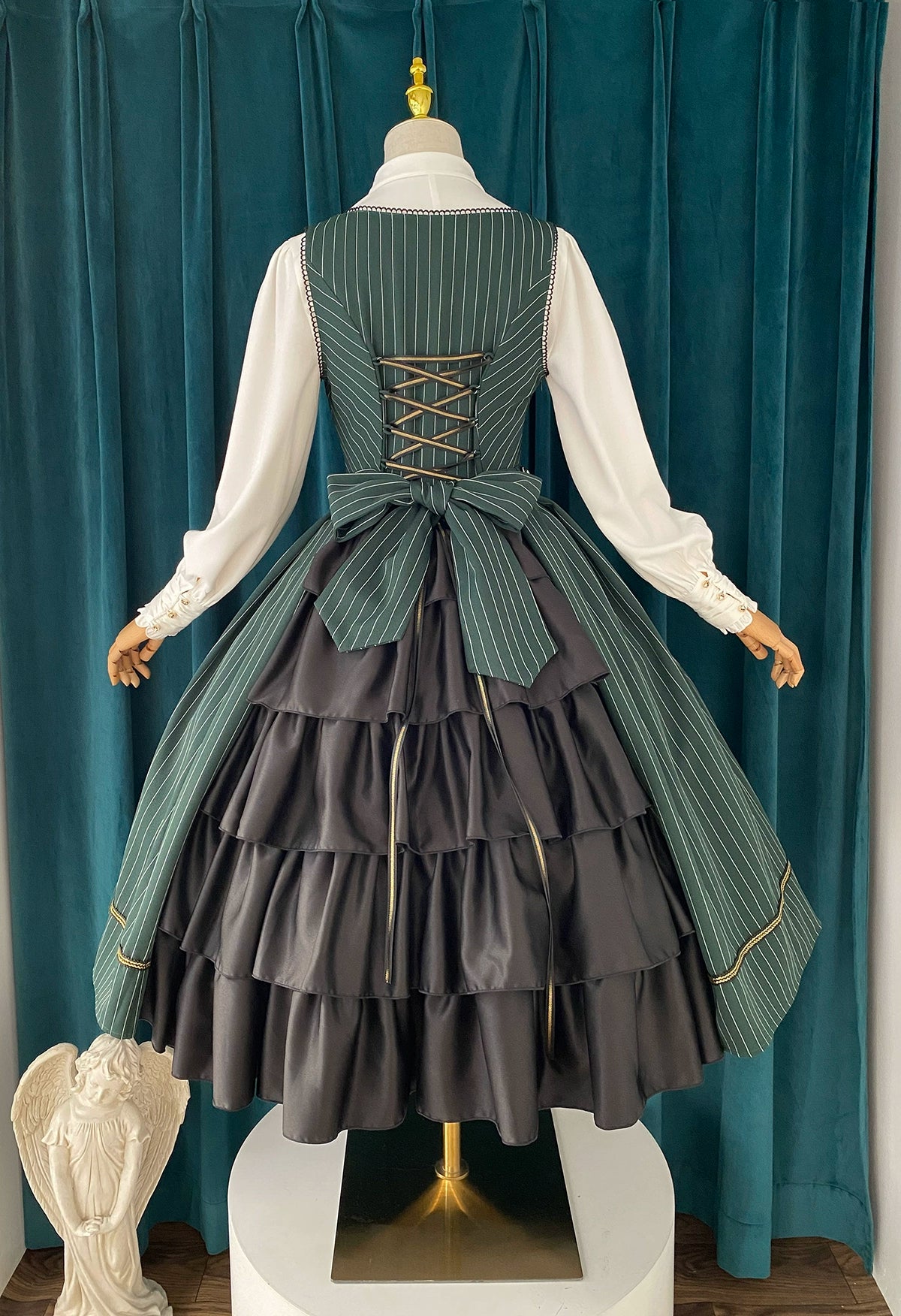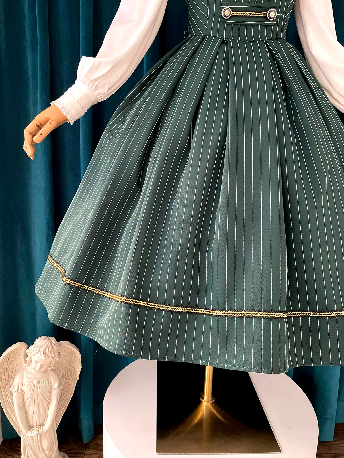 【予約販売】Bright Moon コルセットジャンパースカート ストライプ【グリーン】