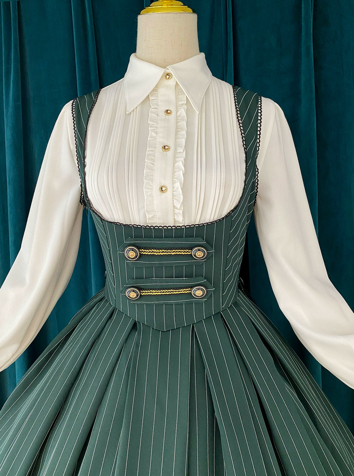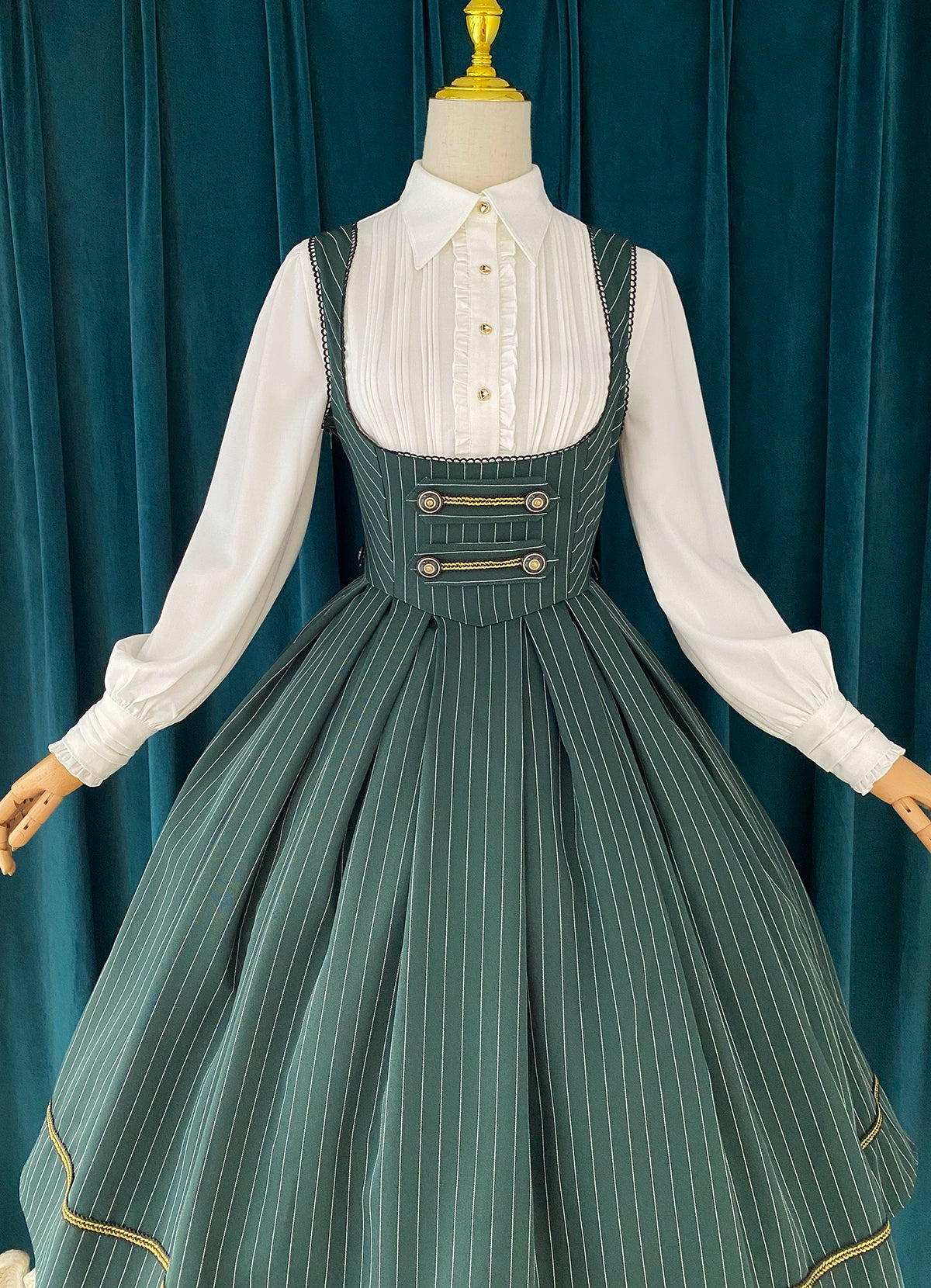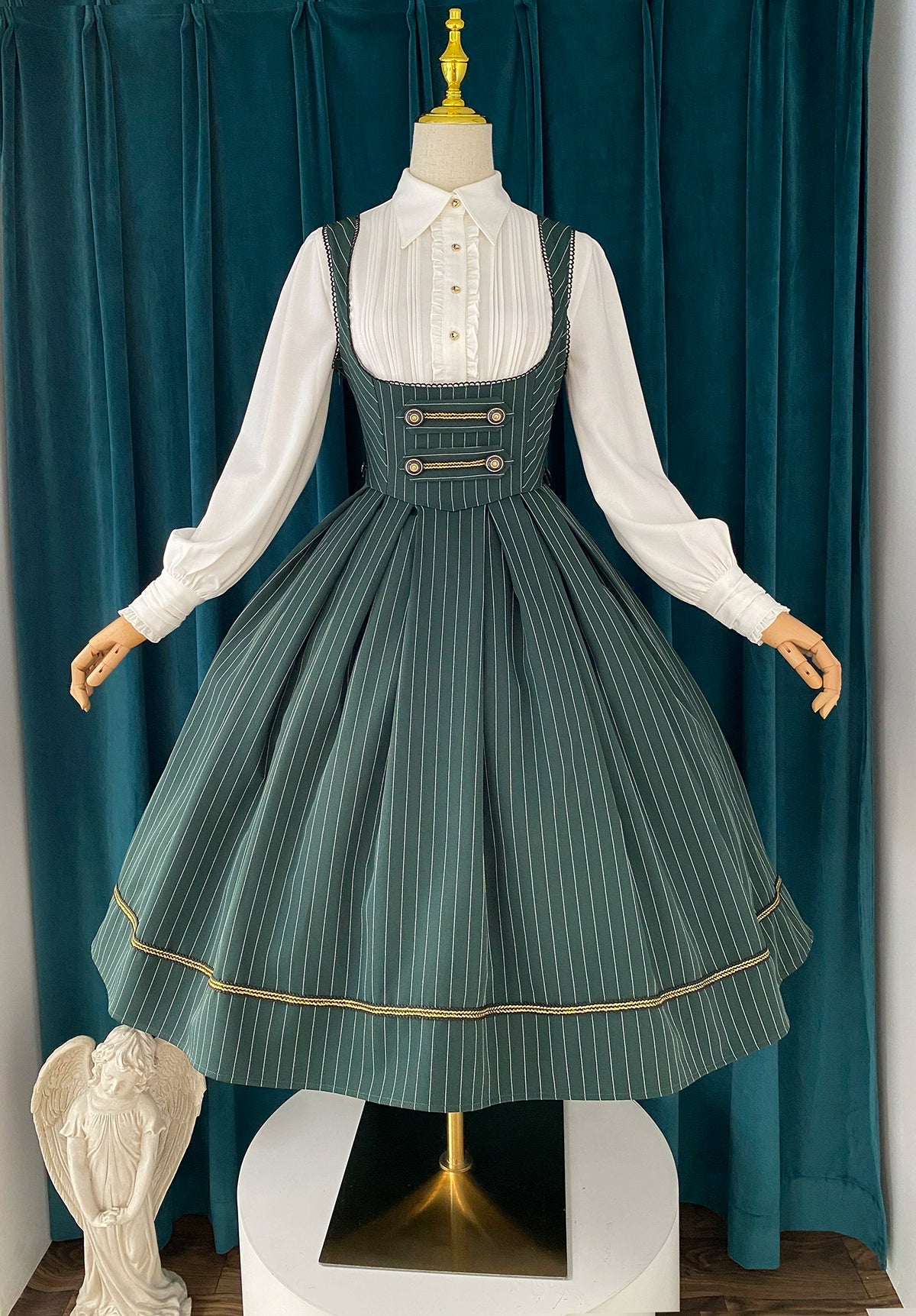【予約販売】Bright Moon コルセットジャンパースカート ストライプ【グリーン】