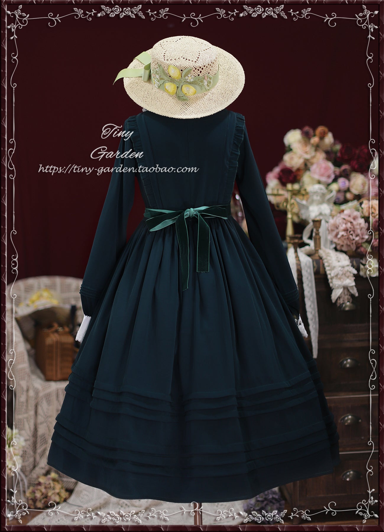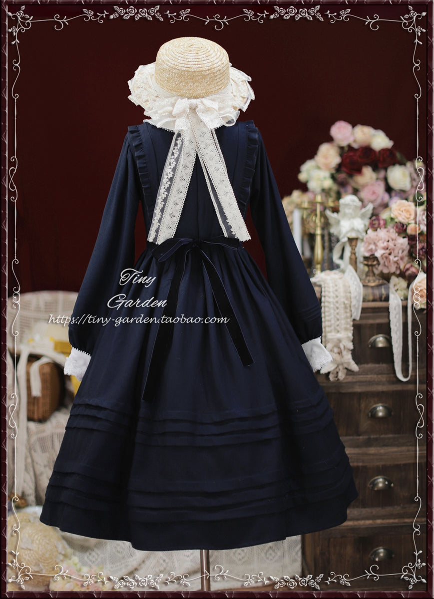 胸元や袖口の白が華やかさと清潔感をプラス。着るだけで英国のお嬢様になれるクラシカルなワンピースです。