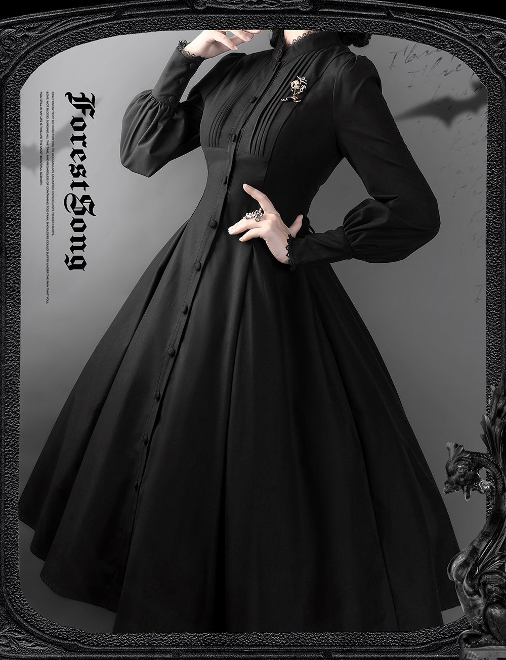 【予約販売】蛇と薔薇刺繍のシスター風ワンピースセット ロング丈