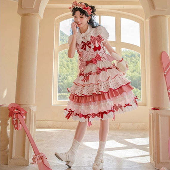 【限定特別価格】クラシカルリボンジャンパースカート・グレー +パニエ
