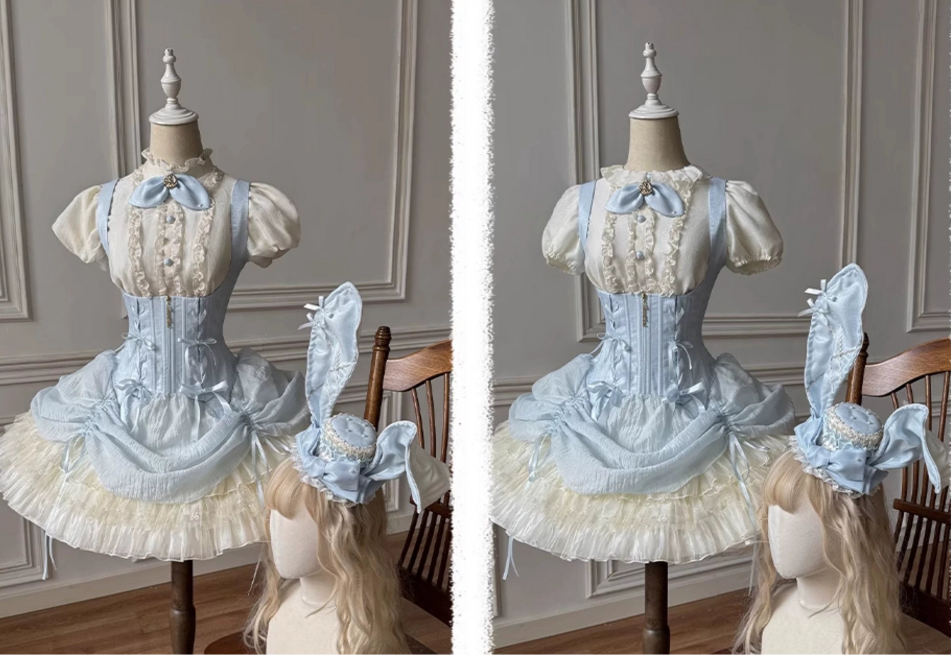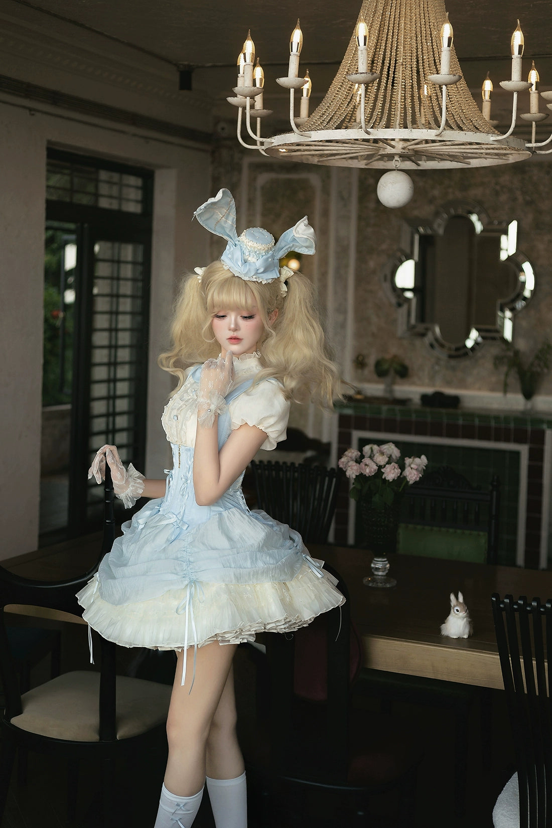 【受注予約6/30まで】Brulee Bunny コルセットジャンパースカートセット・パステルブルー