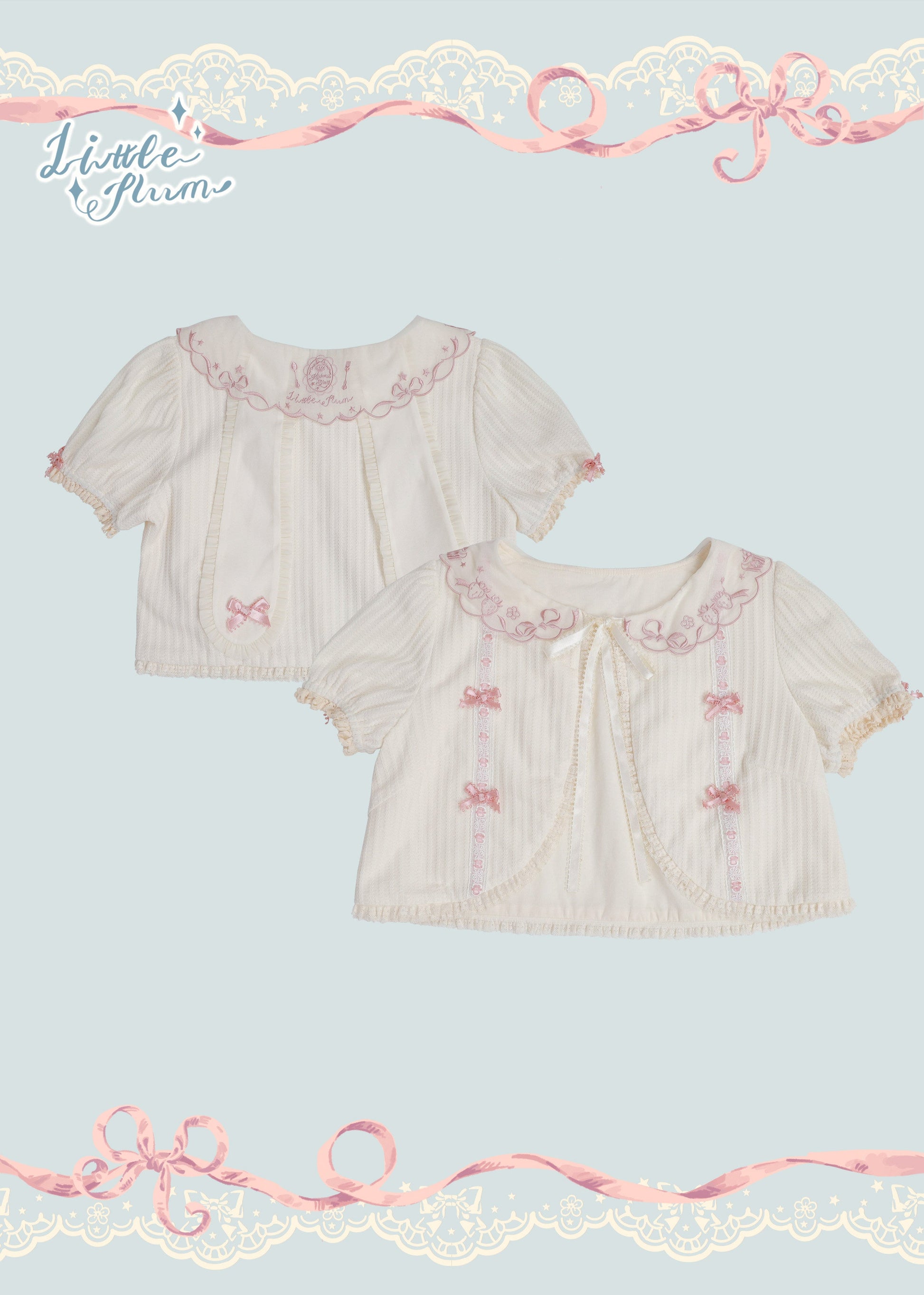 リボンや刺繍が可愛い半袖カーディガン。