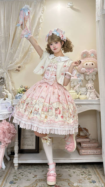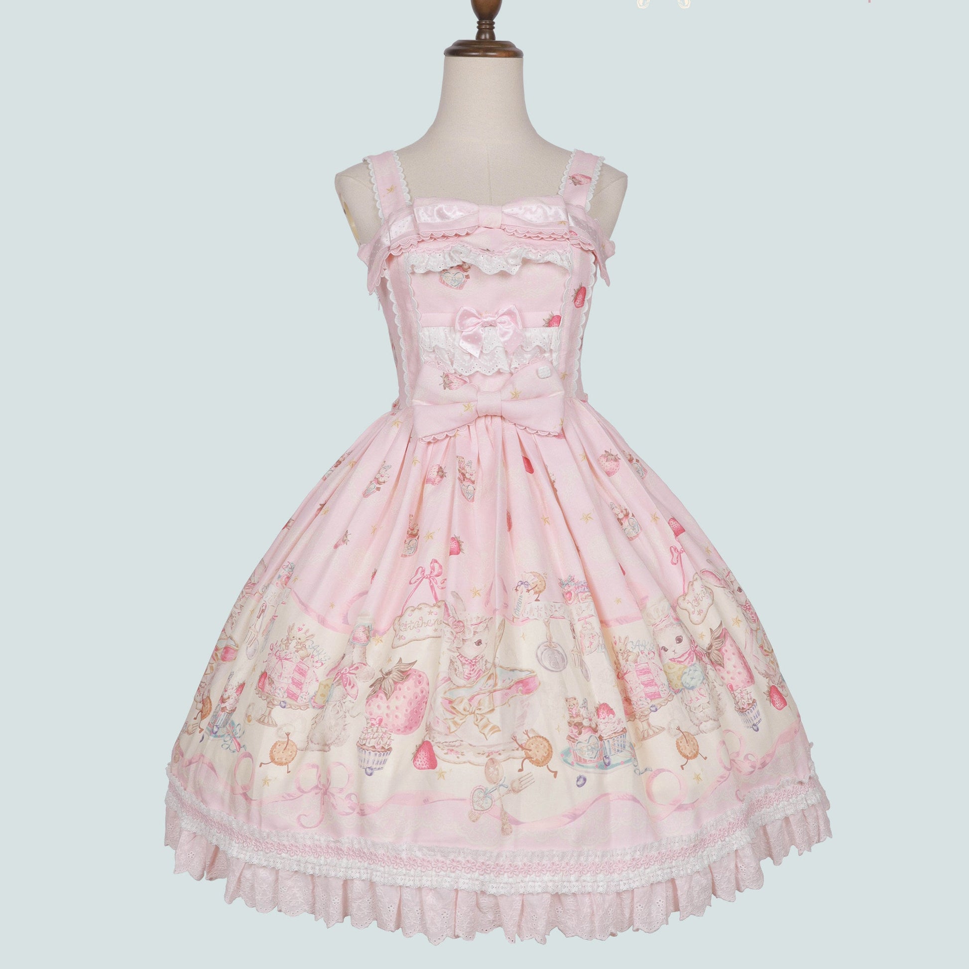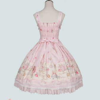 ウサギのベーカリーがプリントされたスイートなジャンパースカート。