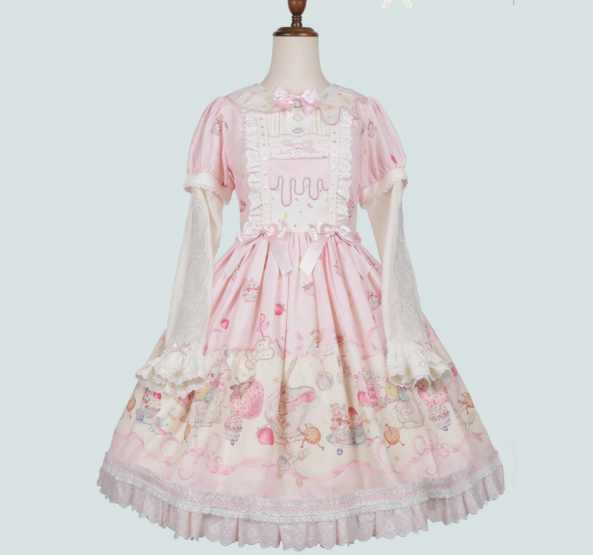 【受注予約1/7まで】Bunny Bakery 付け袖付きワンピース・コットンレースタイプ