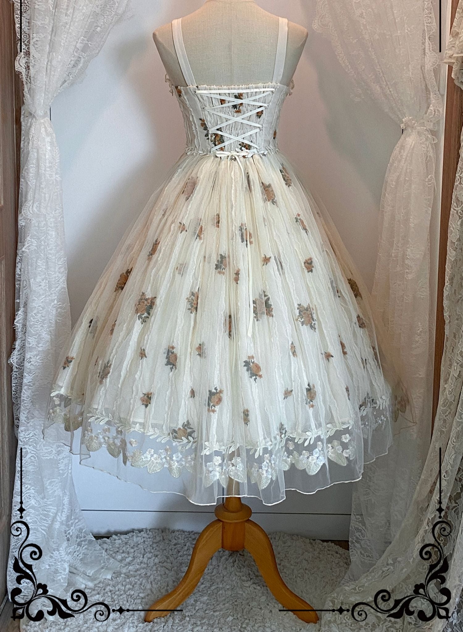 【写真映えNo.1パニエ】長さ調節可能3段ワイヤー入りパニエ50-70㎝