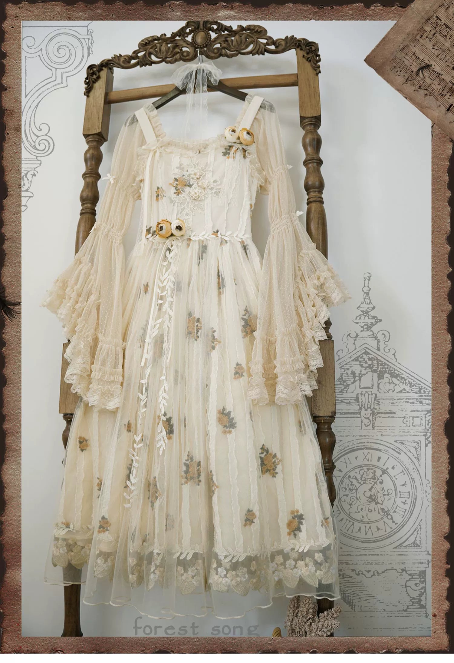 【予約販売】蛇と薔薇刺繍のシスター風ワンピースセット ロング丈