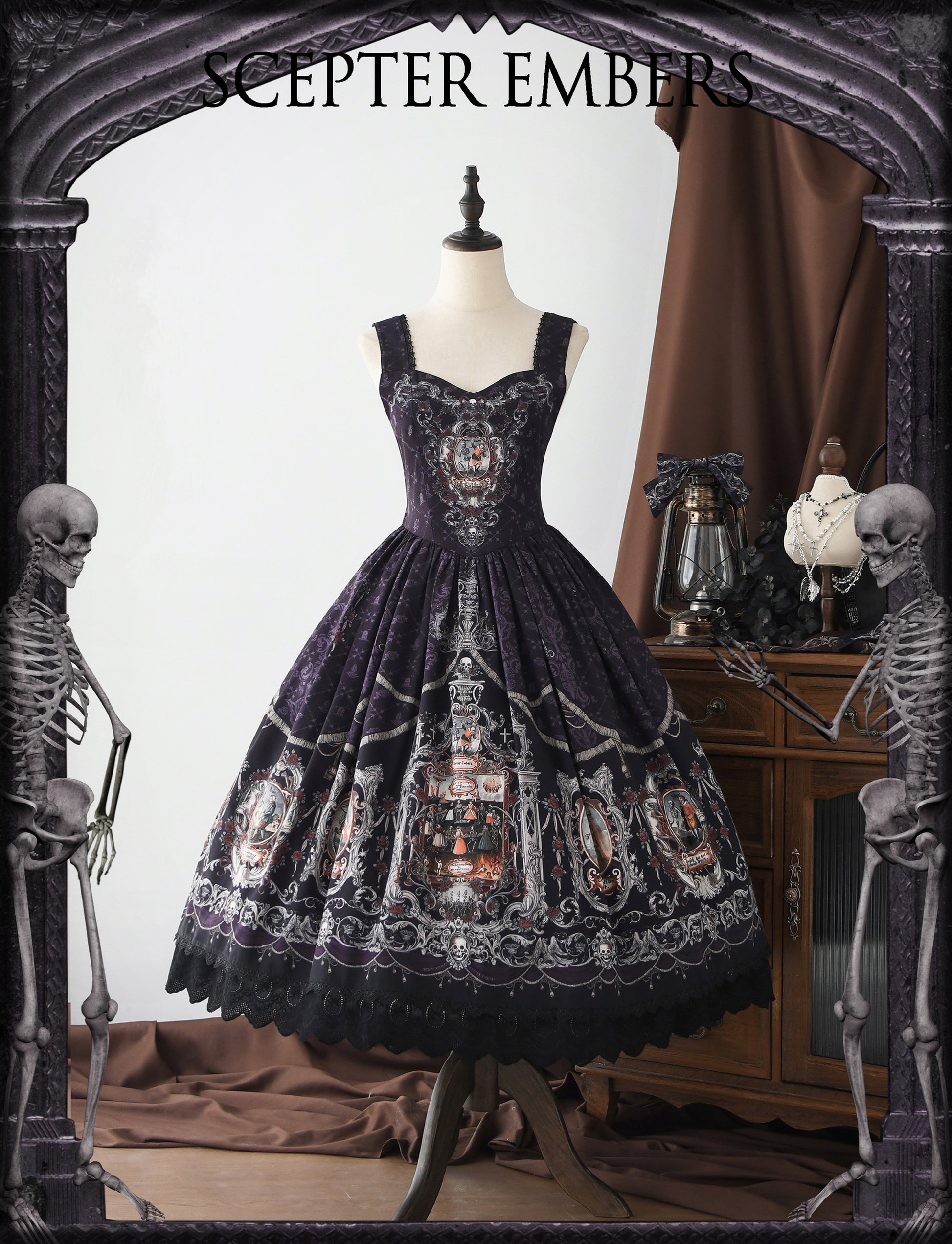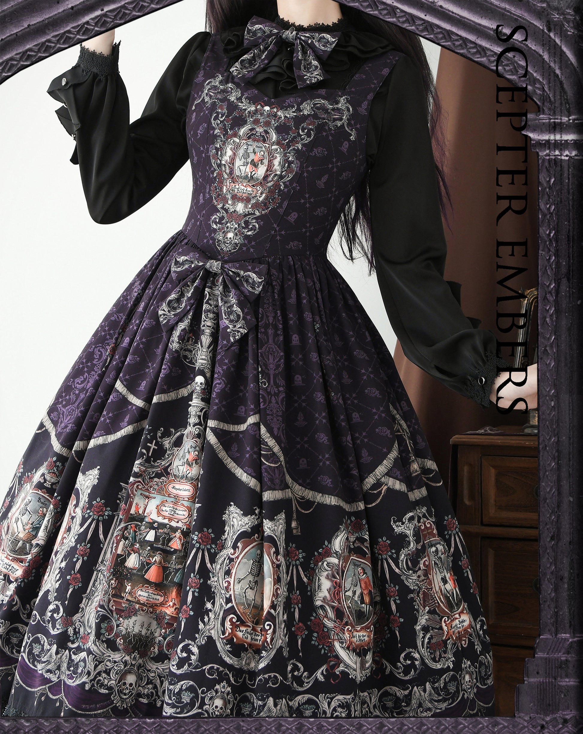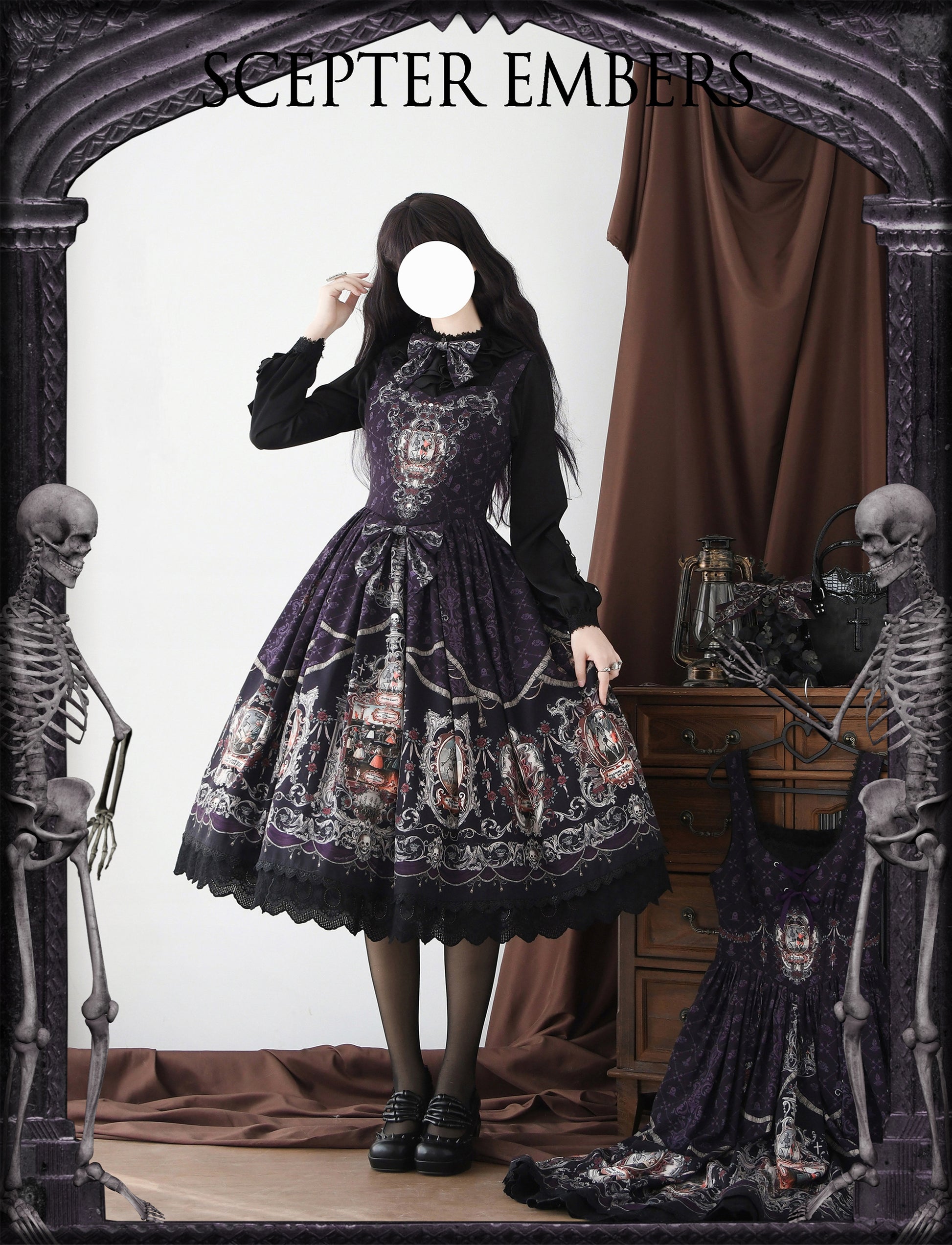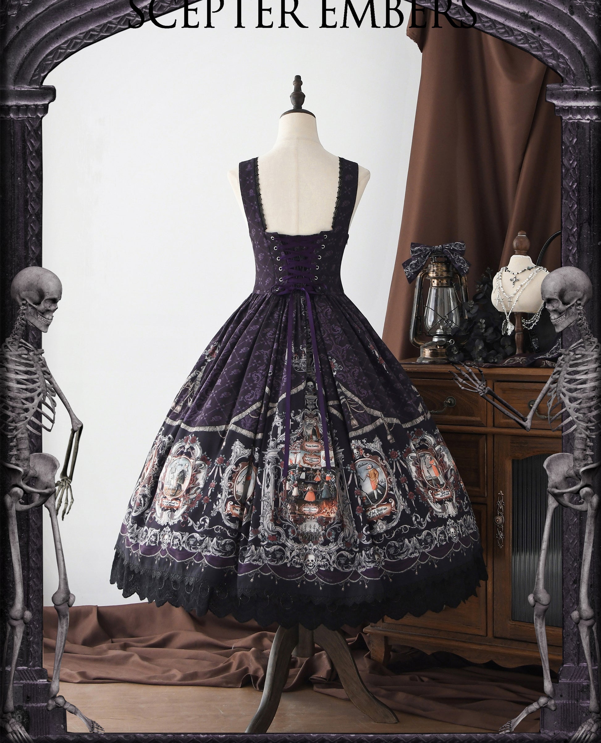 髑髏が描かれたダークな雰囲気のジャンパースカート。