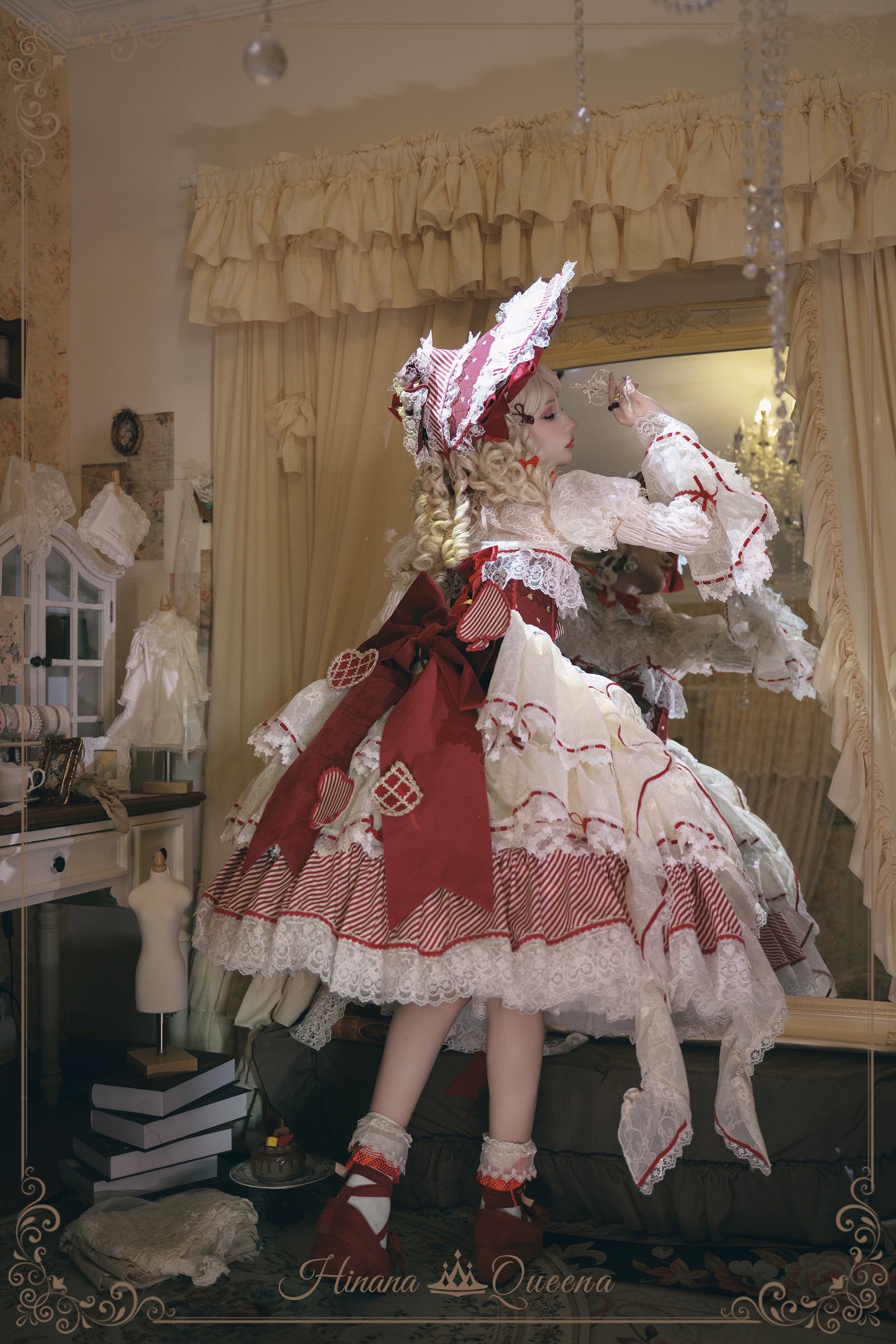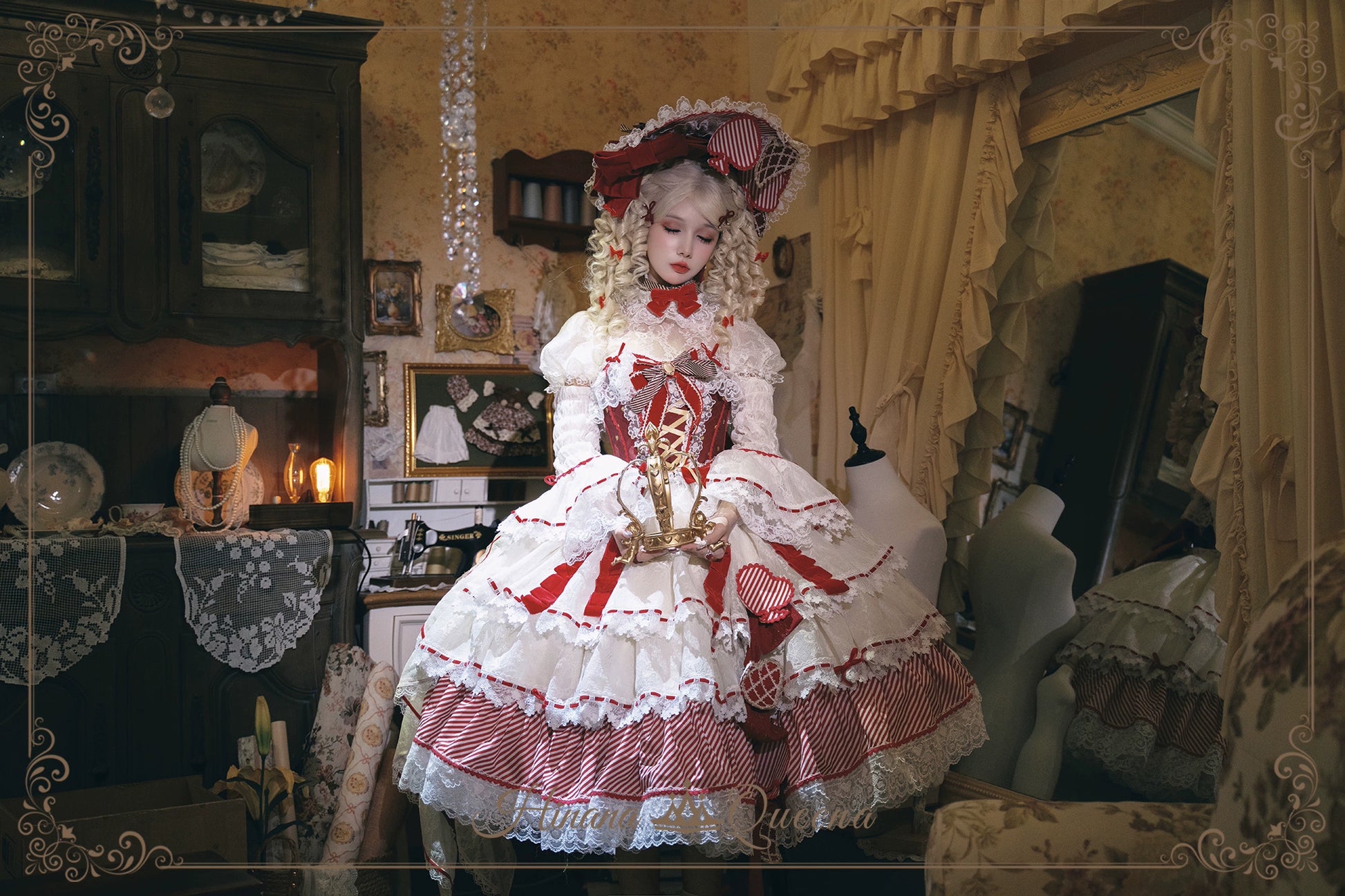 レースとリボンのたっぷりのビスチェとティアードスカート。クイーンレッドはチェックやストライプのトランプモチーフがとってもcute♡ショート丈もあります。