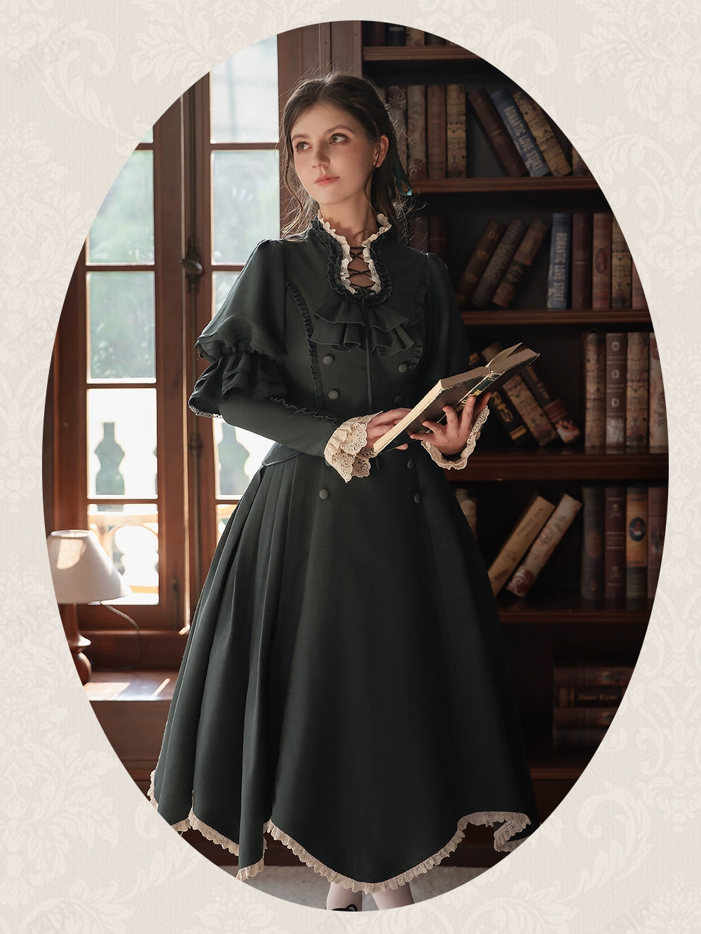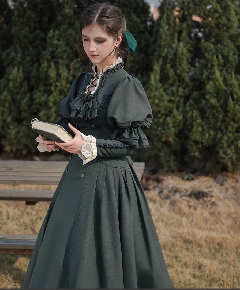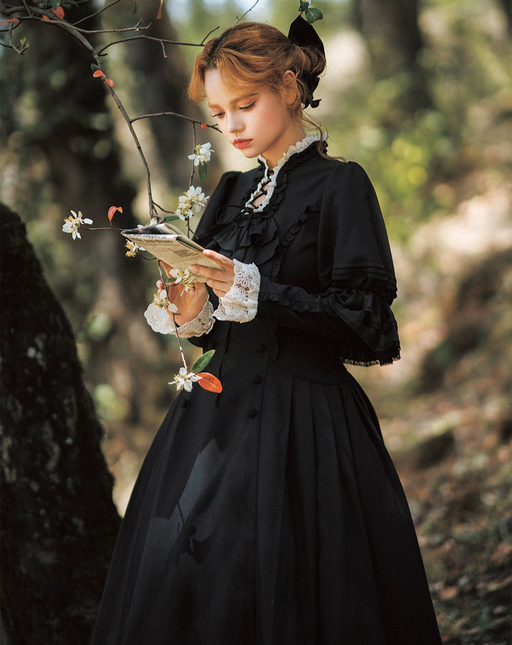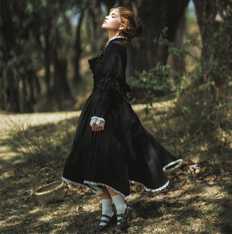 【予約販売】蛇と薔薇刺繍のシスター風ワンピースセット ロング丈